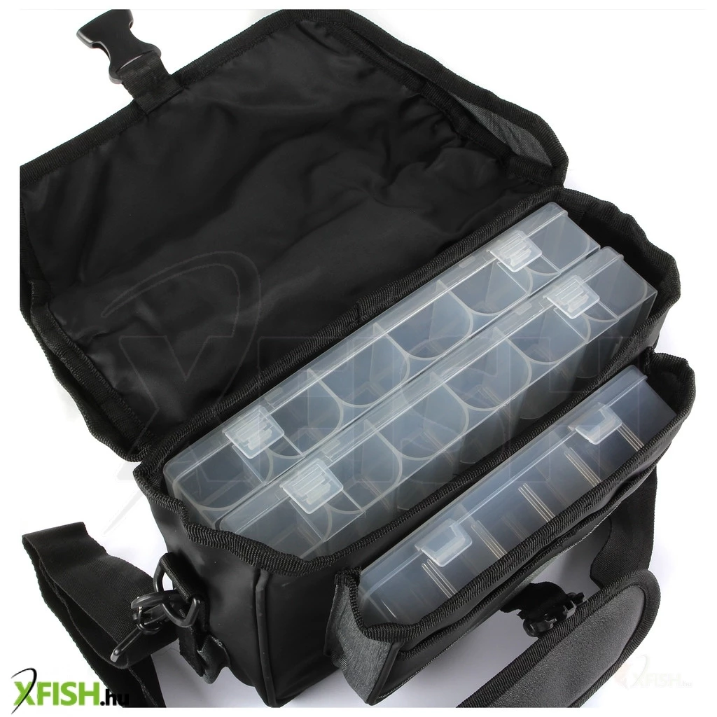 A táska kifejezetten a pergető felszerelés szervezett és könnyű elhelyezésére tervezett. Nagyméretű belső terének köszönhetően minden szükséges eszközt elrejthet benne úgy, hogy azok mindig kéznél legyenek. A három mellékelt doboz segít rendszerezni a horgász kellékeket, így gyorsan és egyszerűen megtalálható minden egyes darab, amikor éppen szükség van rá.