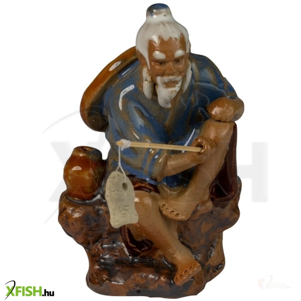 Kis méretű kerámia figura - Ülő, halat fogó horgász