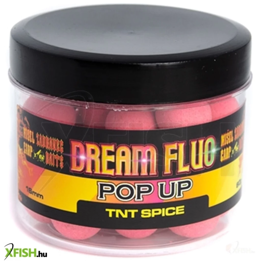 ![]() | Zadravec Dream Fluo Pop-Up bojli 20mm TNT Spice-Pink (Fűszer-rózsaszín) 60 g Átmérő: 20 mm | Íz: fűszer | Kiszerelés: 60 g
