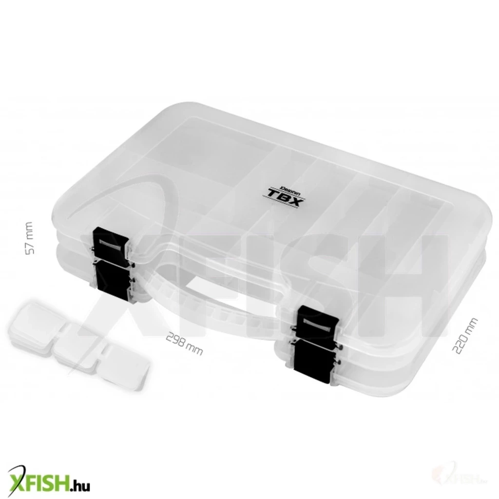 TBX Duo 298-12P Clip egy multifunkcionális műanyag doboz a horgászfelszerelése számára. Átlátszó műanyagból készül , így mindig tökéletesen áttekinthető lesz az Ön számára a dobozok tartalma. A DUO azt jelenti, hogy két önálló rakodórésszel rendelkezik egy alul és egy felül ötletes nyitással. Praktikus fekete műanyag csattal van ellátva. Rendelkezik még beépített merev fogantyúval is a könnyebb szállítás érdekében.