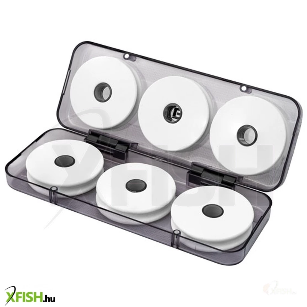 A TBX Rig 220-6F Magnetic mágnes záros doboz átlátszó szürke műanyagból készül. Belsejében 6db EVA hab gyűrű található, amelyek az előkék tárolására szolgál. A csomagolás tartalmát képezik speciális előkerögzítők.