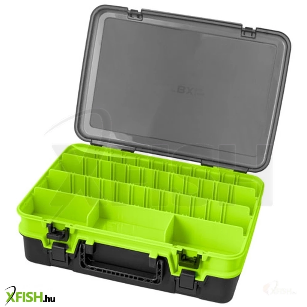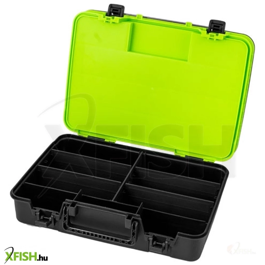 Nagyon jó csalétek vagy más horgász kiegészítők tartására. A klipszek, amelyekkel kinyitják a külön szekciókat, tervezettek és praktikusak. Merev és erős csatok fogják a fedelet, így nem kell aggódni, hogy szállítás közben bármelyik szakasz kinyílik. Fekete, világos zöld elegáns kombinációjában, áttetsző szürke fedéllel.