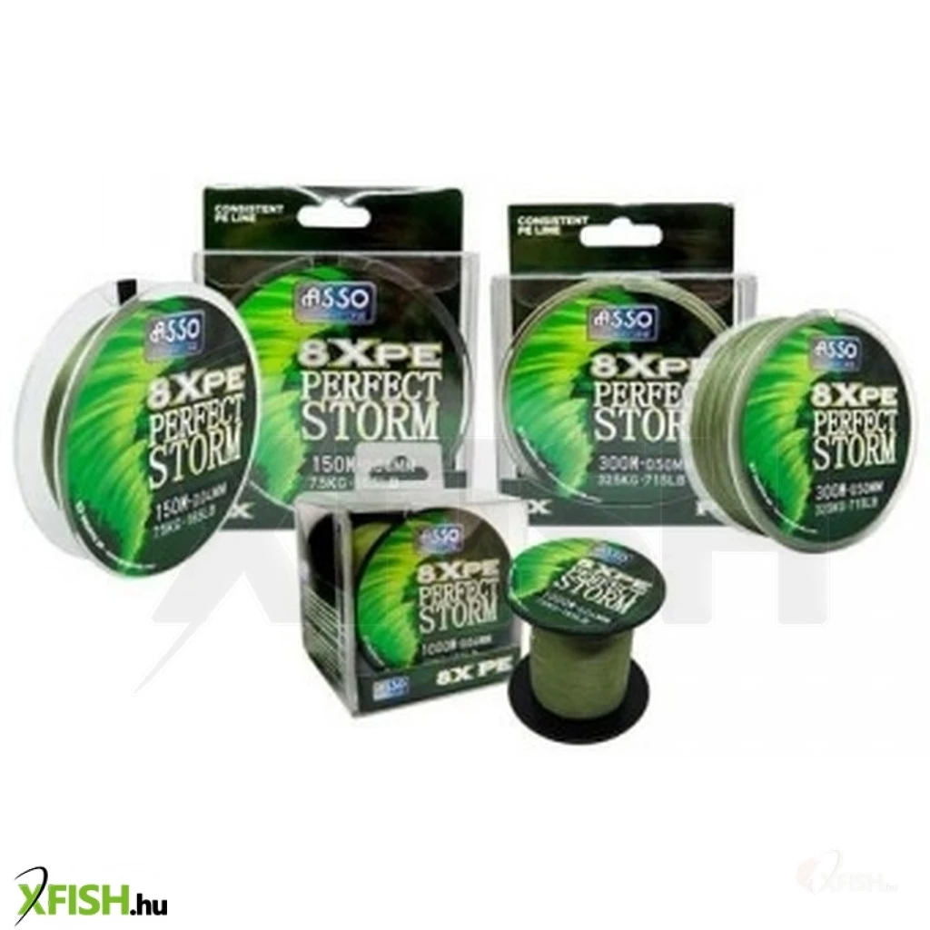 Az Asso Pe 8x Perfect Storm fonott zsinór, 8X fonat, mely rendkívül vékony szálakból készül, így egyedülálló tulajdonságokkal rendelkezik. A legújabb generáció rendkívül erős szálakból készül, garantálva a minőséget és a teljesítményt. A legújabb generációs szövési technológia rendkívül ellenállóvá teszi a zsinórt kopással szemben. A tökéletes kör alakú keresztmetszet, valamint a zsinór bevonata extra simává és lággyá teszi ezért könnyen köthető és akadálytalanul fut a gyűrűk között. A szín kivételes tartóssága, valamint a széles méretválaszték többféle felhasználást tesz lehetővé, ez teszi ezt a fonott zsinórt alapvető tartozékká minden horgász felszerelésében. A zsinór nagyon alacsony nyúlású és gyorsan süllyed a PE szálak fajsúlyának köszönhetően. A bevonat másik előnye az, hogy a nedvszívó képessége minimális. A zsinór mély-zöld színe ideálissá teszi bármely vízre. 11 méretben, és két (150m-es, 300m-es) kiszerelésben kapható. A különleges gyártási technológiának köszönhetően kopásálló, a külső bevonat pedig teljes UV védelmet és hosszú élettartamot biztosít. A zsinór festésekor speciális vegyi kezelést is kapott, hogy a nap ne tudja megváltoztatni a színét. A 150m zsinór mellé nem kell előkének valót venni hiszen 120-140m bőven elegendő pergetésre, illetve fenekezésre, és így is marad 10-20m zsinór melyből köthetünk előkéket is. Használhatjuk pergetni, fenekezni vagy akár akadóban történő úszózáshoz is a vékonyabb méreteket. Az előke használata ideális olyan vizeken, ahol nem hagyhatjuk a halat kontroll nélkül, ahol számít az azonnali bevágás. A vékonyabb átmérőket hajszál előke kötésére is használhatjuk. A vastagabb méretek ideálisak a nagyobb pontyok, süllők, csukák, illetve a 0,41-0,43 és 0,50mm-es kivitel harcsák kifogásához is.