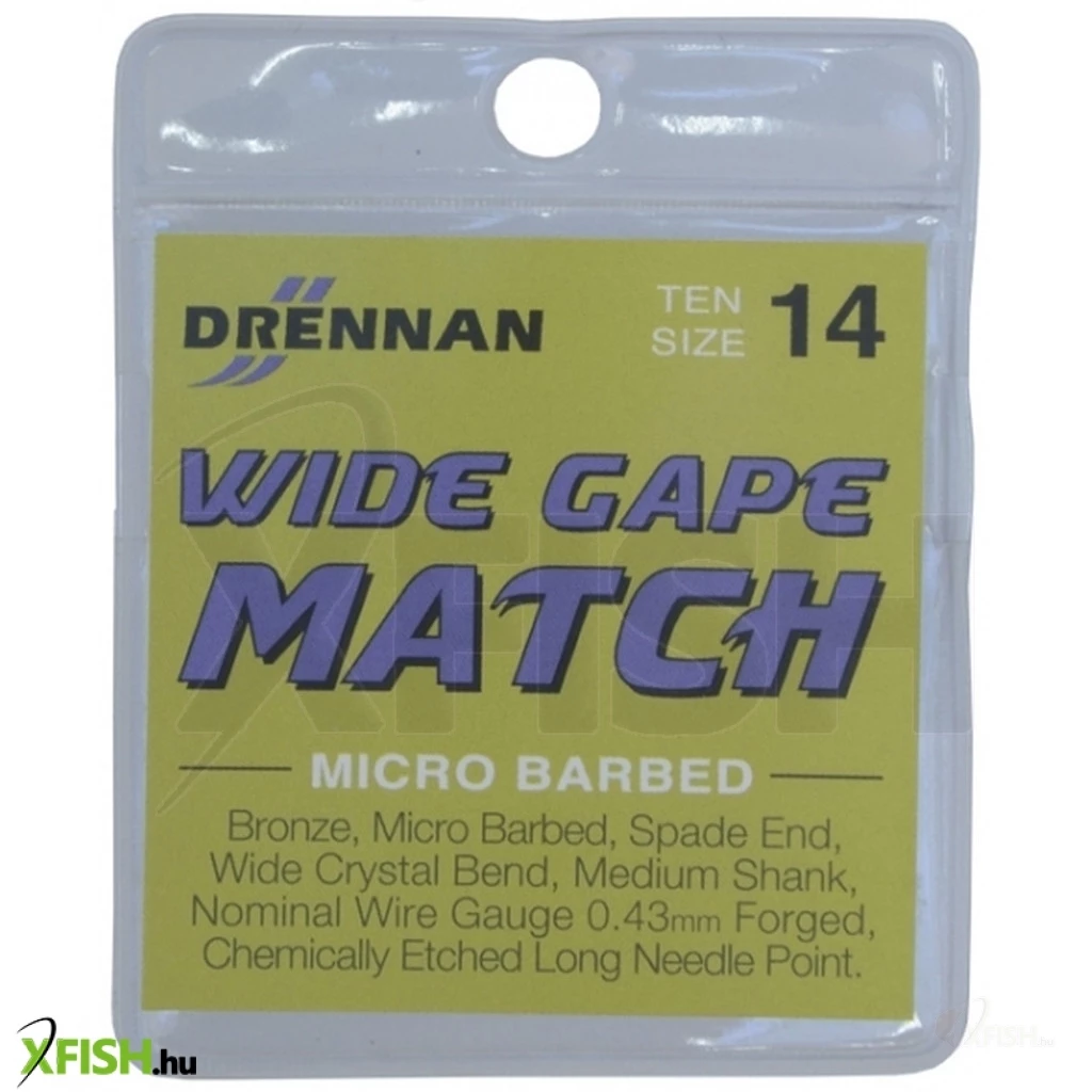 ![]() | Drennan Wide Gape Match MikroSzakállas Keszegező Horog 14 | 10 db/csomag Méret: 14