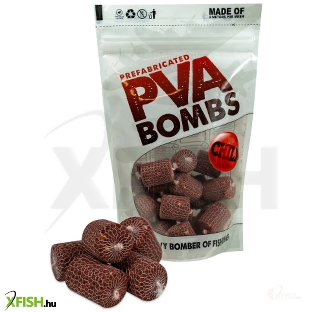 Minden egyes zsákocska mögött hosszú évek versenytapasztalata, több ezer vízparton töltött óra van. A PVA BOMBS a speciális helyzetekhez is igazodva 5 különféle ízben kerül forgalomba, így minden szituációban eredményesen használható, melyek íz és beltartalmuktól függetlenül PVA barát dippel vagy locsolóval még vonzóbbá tehetők. Minden termék a haltakarmányozásban is használt magas minőségű kiváló beltartalommal bíró haltáp-keveréket és hozzáadott aminosavakat, omega-3 zsírsavakban gazdag halolajat és a tápanyag hasznosítást segítő esszenciális olajokat tartalmaz.