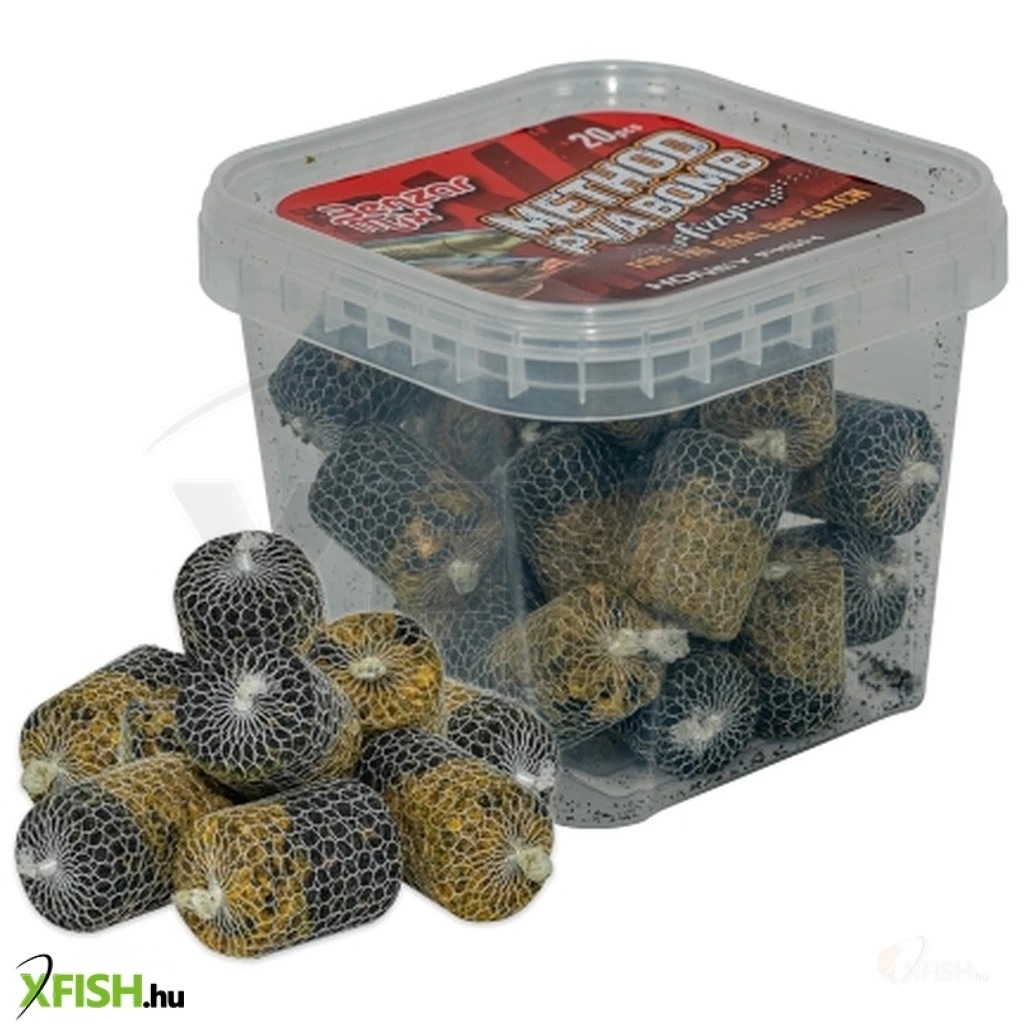 A PVA Bomb-ok alapja prémium Benzár Method Mix-ből áll, mely kiegészül roppantott, tört és kis méretű fehérjedús pelletekkel, plusz magas szénhidrát tartalmú magokkal.