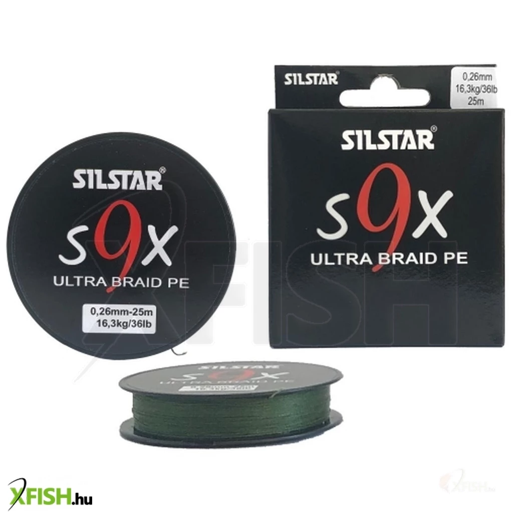 SILSTAR 9X PE ULTRABRAID 25m, egy 9 rétegű fonat, amely ultravékony és ellenálló nagy sűrűségű PE-szálakból készül. Az ilyen típusú szál biztosítja, hogy a belőle készült fonat egy lineáris szakítóval és csomószilárdsággal rendelkezzen, amely határozottan meghaladja az átlagot. Az új szövési technológia garantálja a multirost rendkívüli szilárdságát a legszélsőségesebb igénybevétel, koptatások után is. A nagyon nagy kopásállóság a felület figyelemre méltó simaságával, sima és selymes kombinációjával jár. A tökéletesen kerek felület garantálja a hihetetlen simaságot és a zsinórvezető gyűrűkön a könnyű futást. Nagyon erős, kopásálló, ezért a legtöbb horgászati módszerhez megfelelő. A zsinór mély zöld színe a halak természetes közegében nem üt el, nem feltűnő ezért nem riasztja el a halakat. A zsinór 150m-es és 25m-es kiszerelésben érhető el.