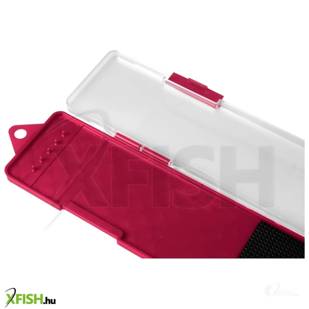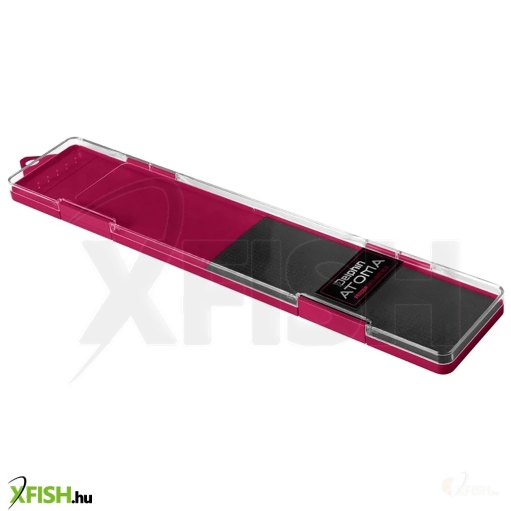 A Delphin ATOMA feeder előketartó box melynek, egy praktikus segédeszköz a kész előkék tárolására, mely nem hiányozhat egyetlen horgász felszerelésében sem. Ez a lapos box műanyagból készült. Az alsó része bordó színű melyen műanyag kiálló részek vannak, ezekre rá tudja fogatni a az előkéit és az EVA habba bele tudja szúrni a horgot. A felső rész átlátszó, így tökéletes az áttekinthetősége az előkéiről. Két klippel záródik.