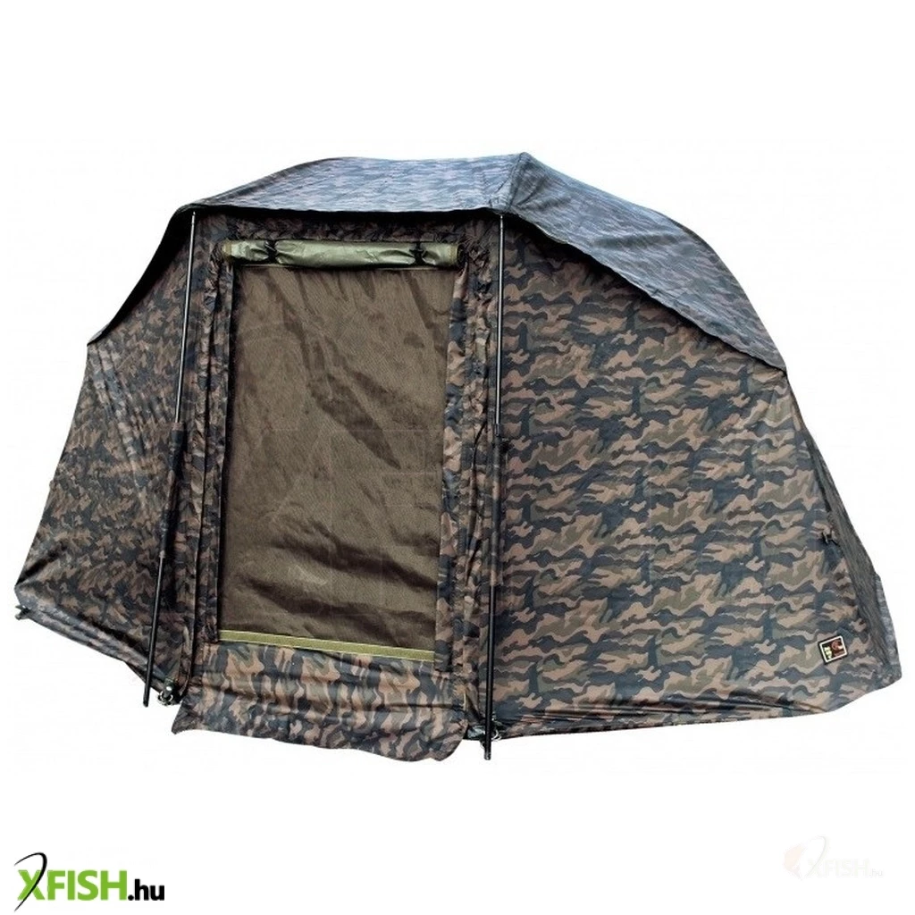 Örömünkre szolgál, hogy bemutathatjuk Önnek exkluzív camo kiadásunk legjobb termékeit. Ez teljes egészében hosszú távú fejlesztésen és stresszteszteken ment keresztül, hogy megfeleljen a mai horgászok minden kihívást jelentő igényének. Örülünk, hogy kiváló minőségű és modern kialakítást értünk el elfogadható áron. A rúd alapja szilárd esernyőszerkezet tartó teleszkópos csövekből áll. A brolly kiváló minőségű 210D anyagból készül, belső PVC bevonattal készült. A fő előnye a gyors és egyszerű összeszerelés és átalakítás az esernyő mechanizmusnak köszönhetően. A brolly belsejében találunk egy középső sávot, amely nem korlátozza Önt abban a nagylelkű térben, amelyet ez a brolly kínál. Előlapján 2 viharoszlop található. Az előlapon van egy becsavarható bejárati ajtó, amely behajtható vagy akár teljesen le is szerelhető. A szúnyogháló szintén része a bejáratnak.