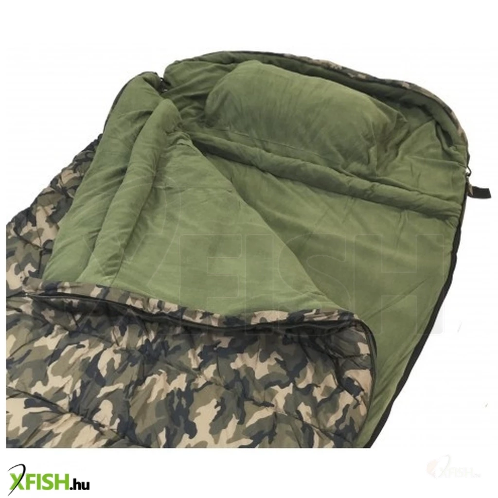 A Quattro-tex® nem teszi lehetővé a nedvesség bejutását, hanem belülről kifelé lélegezhető. Ennek a tulajdonságnak köszönhetően pára áramlást biztosítanak, amely alvás közben szabadul fel a szervezetből. Az összes felhasznált anyag összetétele így garantálja a természetes alvás minden évszakban való élvezetét. A hálózsák praktikus, és nagy cipzárjai mindkét oldalon, mindkét oldalra nyílnak. Az alvózsák belsejében zipzseb van mobiltelefonhoz vagy dokumentumokhoz. A fej alatt egy kényelmes párna eltávolítható a fej alatt. Az alvózsák közepén van egy kihúzható heveder, amely könnyen rögzíthető a székre.A csomagban van, egy hordtáska is a camo designban.