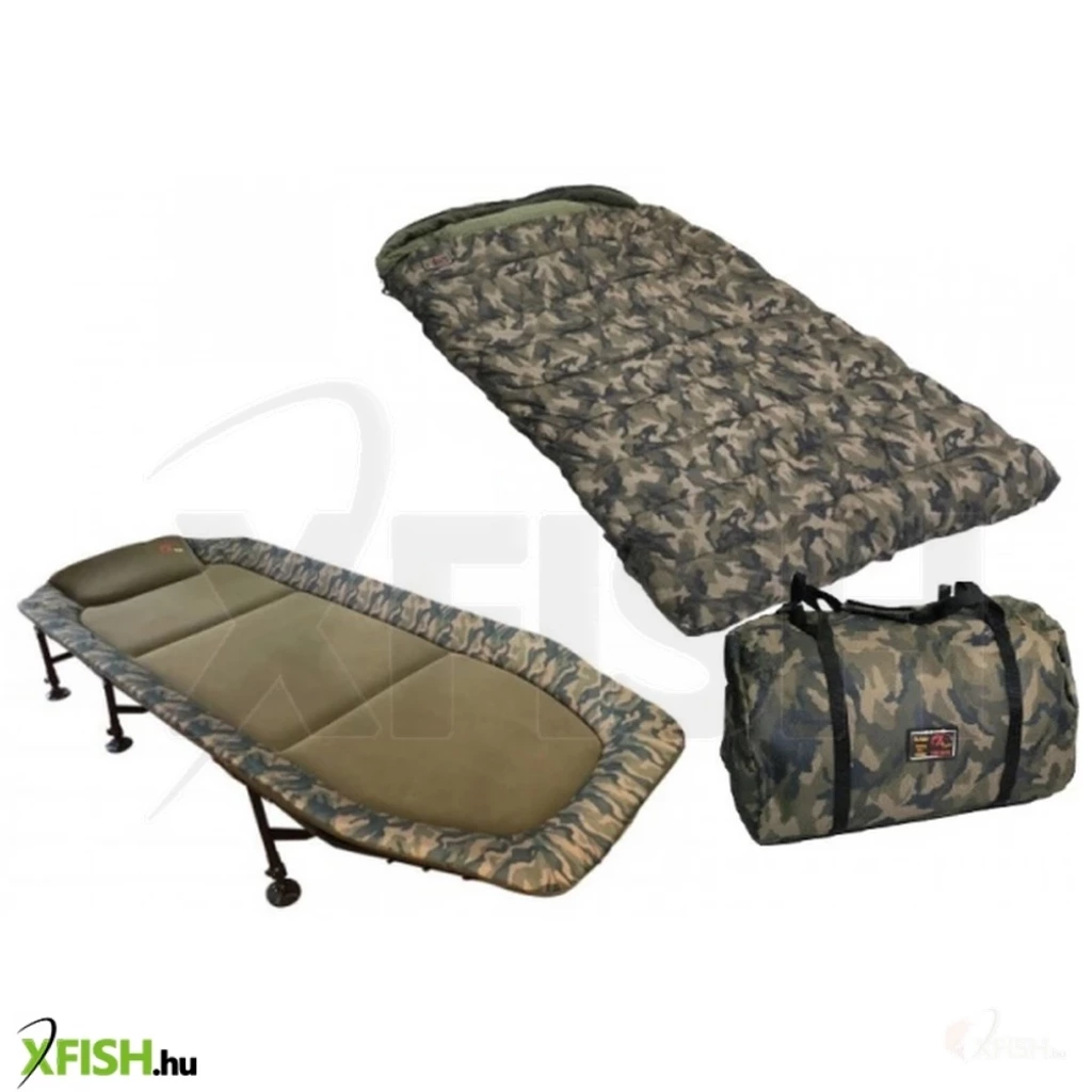 Zfish Camo Set Flat Bedchair + Sleeping Bag Horgász ágy + Hálózsák 220x100 Cm 150 kg Teherbírással