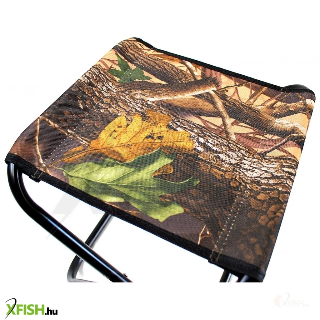 A szék szilárd és stabil, fekete fémszerkezetű váza garantálja a megbízható használatot, miközben a valódi fa mintás camo ülése stílusos megjelenést kölcsönöz neki. A 20 mm vastag konstrukció biztosítja a megfelelő stabilitást és a 120 kg-os teherbírást. Az ülés anyaga impregnálva van, így ellenáll a nedvességnek és könnyen tisztán tartható, továbbá a dupla szövés biztosítja a tartósságot és a kényelmet.