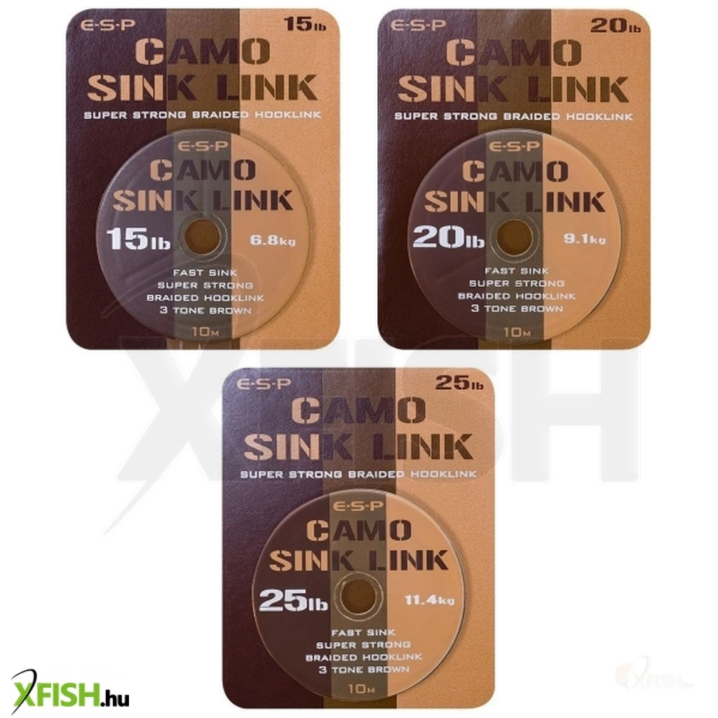 ![]() | Esp Camo Sink Link Fonott Előkezsinór Barna 25Lb 10M Hosszúság: 10 m | Szakítószilárdság: 15 kg
