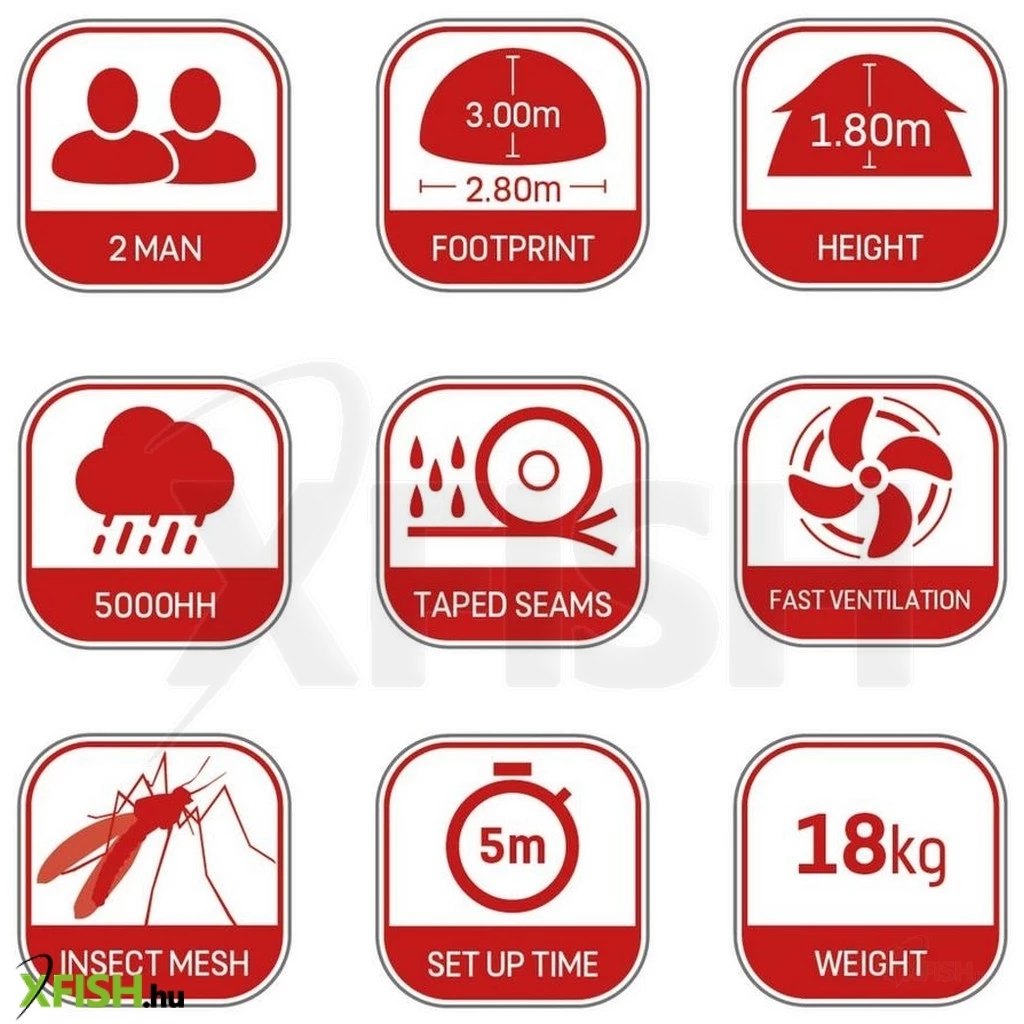 A JRC Extreme TX2 Man Bivvy Nagy Horgászsátort úgy tervezték, hogy a hosszú horgászat kényelmét szolgálja. Sokoldalú ajtó- és ablak-opciók. Hátsó és oldalsó hálószellőző panelekkel rendelkezik, megbízható vízálló viharlemezek biztosítják a megfelelő védelmet.