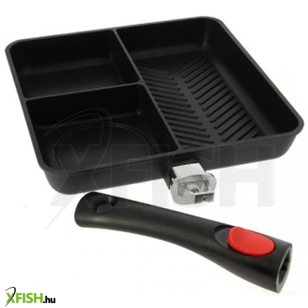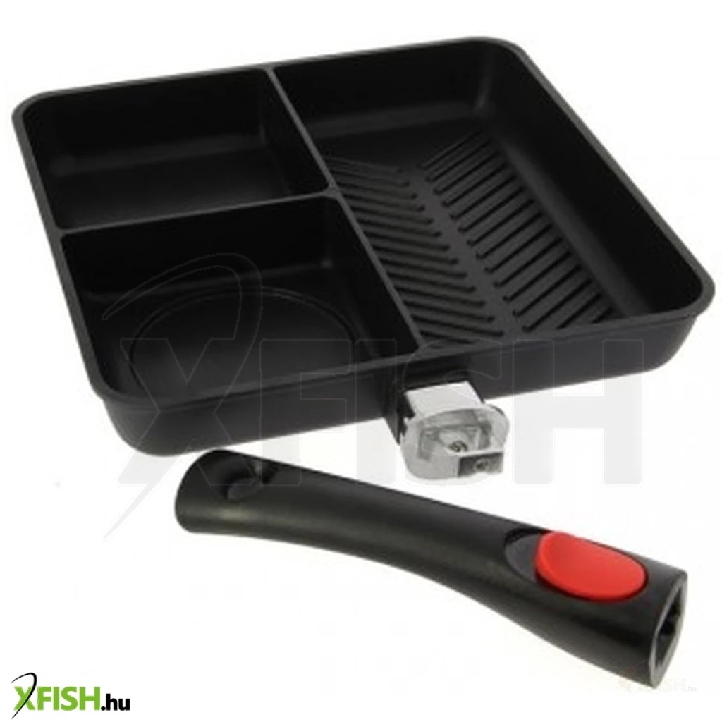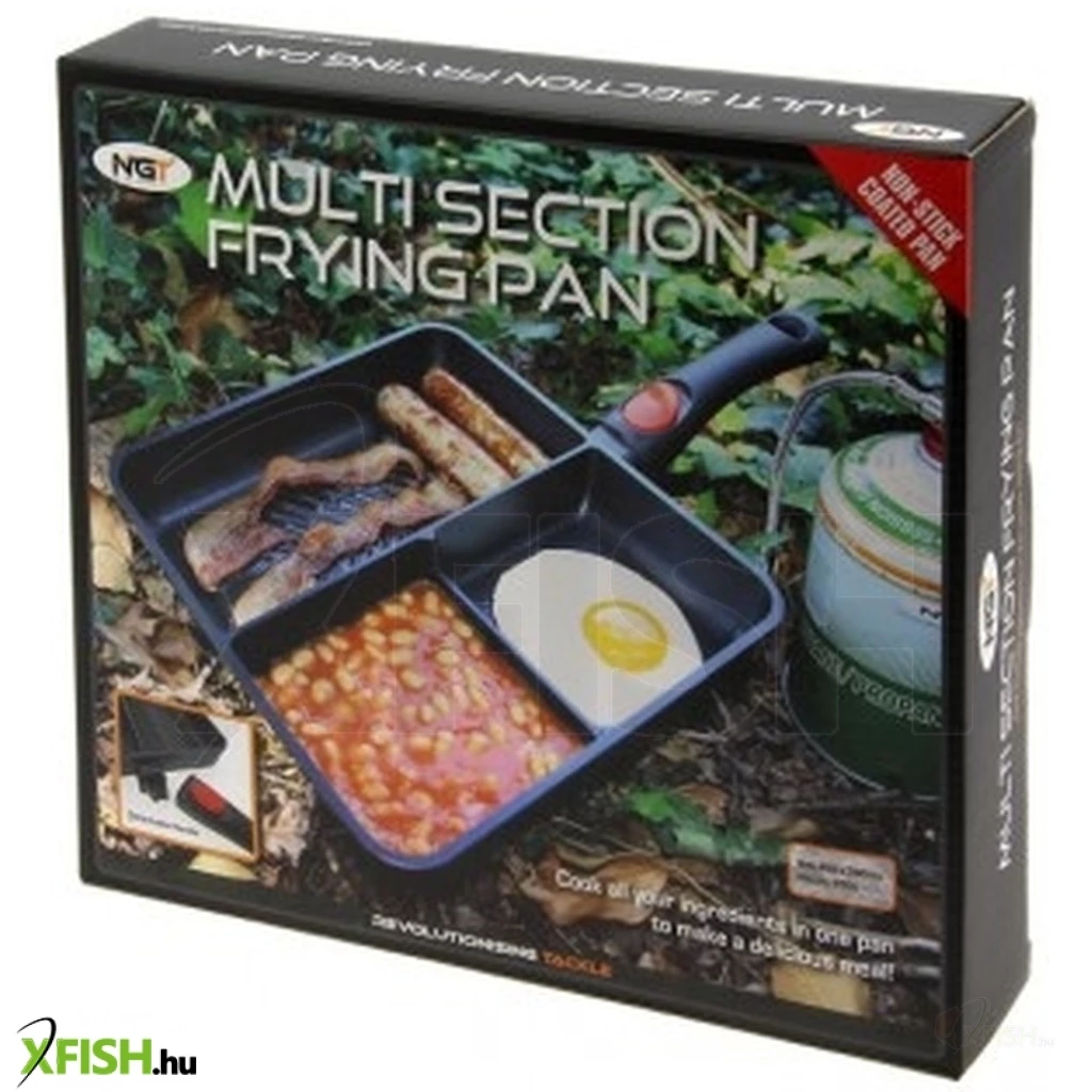 Itt van az új NGT 3 osztásos serpenyő! Vízparti reggeli készítés már nem akadály. Három különböző szakaszban ez a serpenyő egyszerre tartalmazhatja példul a babot, a tojást és a kolbászt / szalonnát. Ezenkívül eltávolítható fogantyúval rendelkezik az egyszerű tárolás érdekében, és kiváló minőségű tapadásmentes anyagból készül.