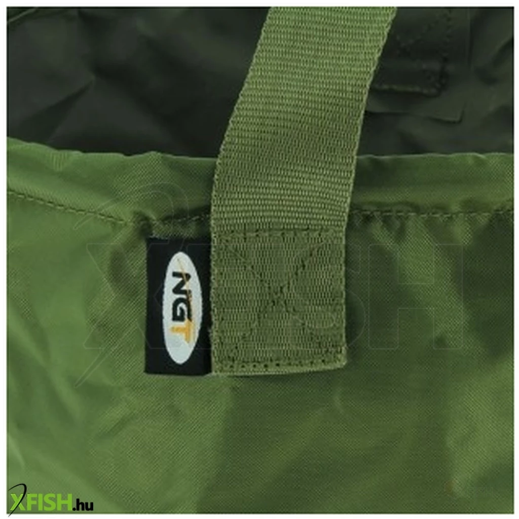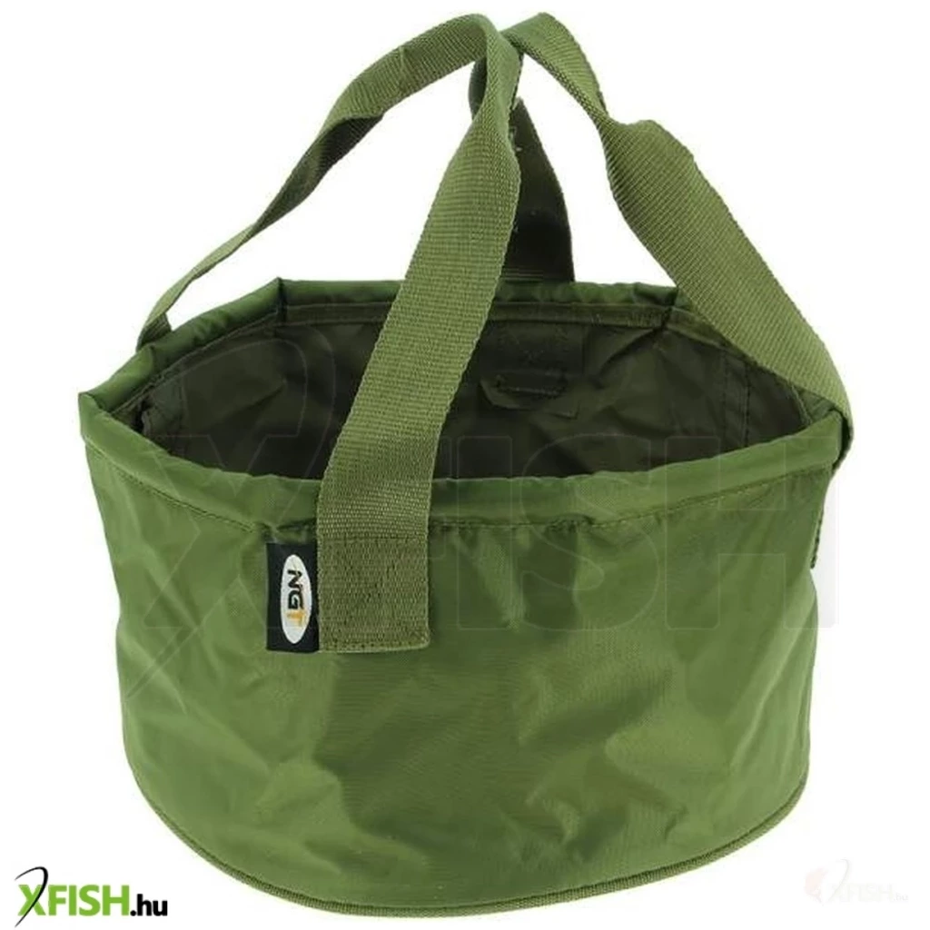 Zöld színű, összecsukható, PVC csalis edény hordozó fogantyúval.