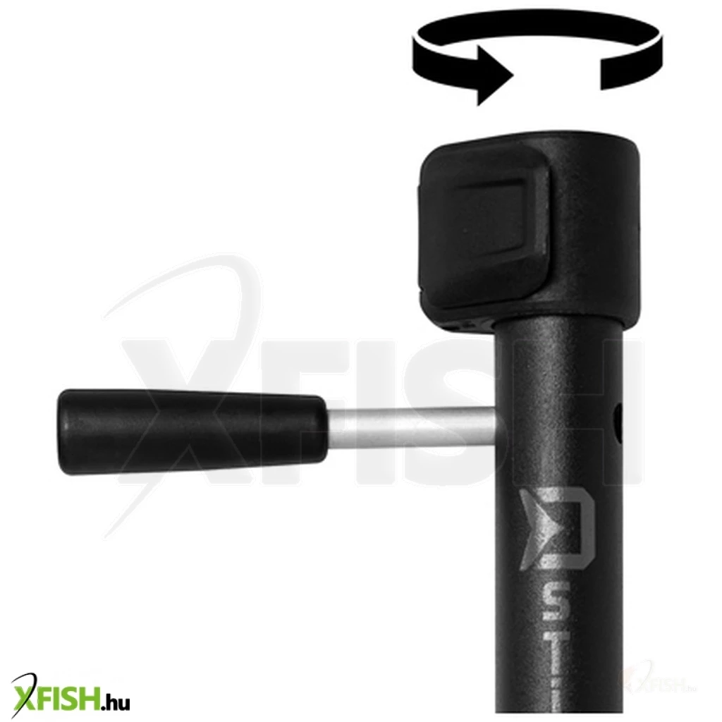 A Delphin D-STICK teleszkópos leszúró bottartó fúróspiccel. Már az első ránézésre látható a robusztus, mégis könnyű termék prémium kivitele. Alapját vastagfalú csövek képezik melyek szilárdak, fekete mat felületkezelése biztosítsa a hosszú élettartamot. Ez a modell innovatív széthúzó és rögzítő mechanizmussal készül, mely minőségi ABS műanyagból gyártódik. Ez az átdolgozás egyszerűsítette a kezelését és egyúttal bebiztosítsa, hogy a bottartó ne tolódjon magától össze. A leszúró alsó részén masszív fúró hegy található, amely lehetővé a bottartó keményebb alapokba történő lefúrását is. A fúró hegy rögzítése csappal (szegeccsel) van megoldva, ezáltal nem áll fenn annak a veszélye, hogy a fúróhegy a földben ragad és Önnek egy használhatatlan bottartója marad! Ennek a rögzítési módnak a legnagyobb előnye a szilárdsága és ereje. A bottartó felső részén egy kar található, amelyet az alsó részbe kell behelyezni, és ennek segítségével fúrás során erőkifejtésre alkalmas karként szolgál. A bottartó felső részén masszív menetes fej van, melybe bele tudja helyezni a bottartó fejet vagy az elektromos kapásjelzőt.