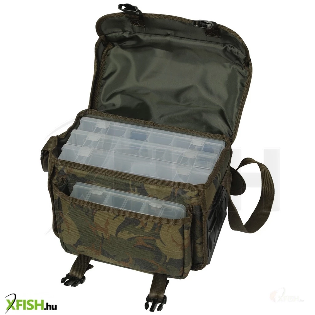 A kényelmet egy állítható és párnázott vállpánt garantálja, amely lehetővé teszi, hogy hosszabb távolságokat is kényelmesen megtegyél a horgászhelyig. Továbbá, a táska alsó része mosható és vízálló, így nem kell aggódnod, ha nedves vagy sáros környezetben használod. A víztaszító camo minta nemcsak divatos megjelenést kölcsönöz, hanem a természetbe is könnyen beleolvad. A táska kompakt, mégis tágas belső elrendezése biztosítja, hogy minden horgászapró részletet és felszerelést könnyedén magaddal vihess.