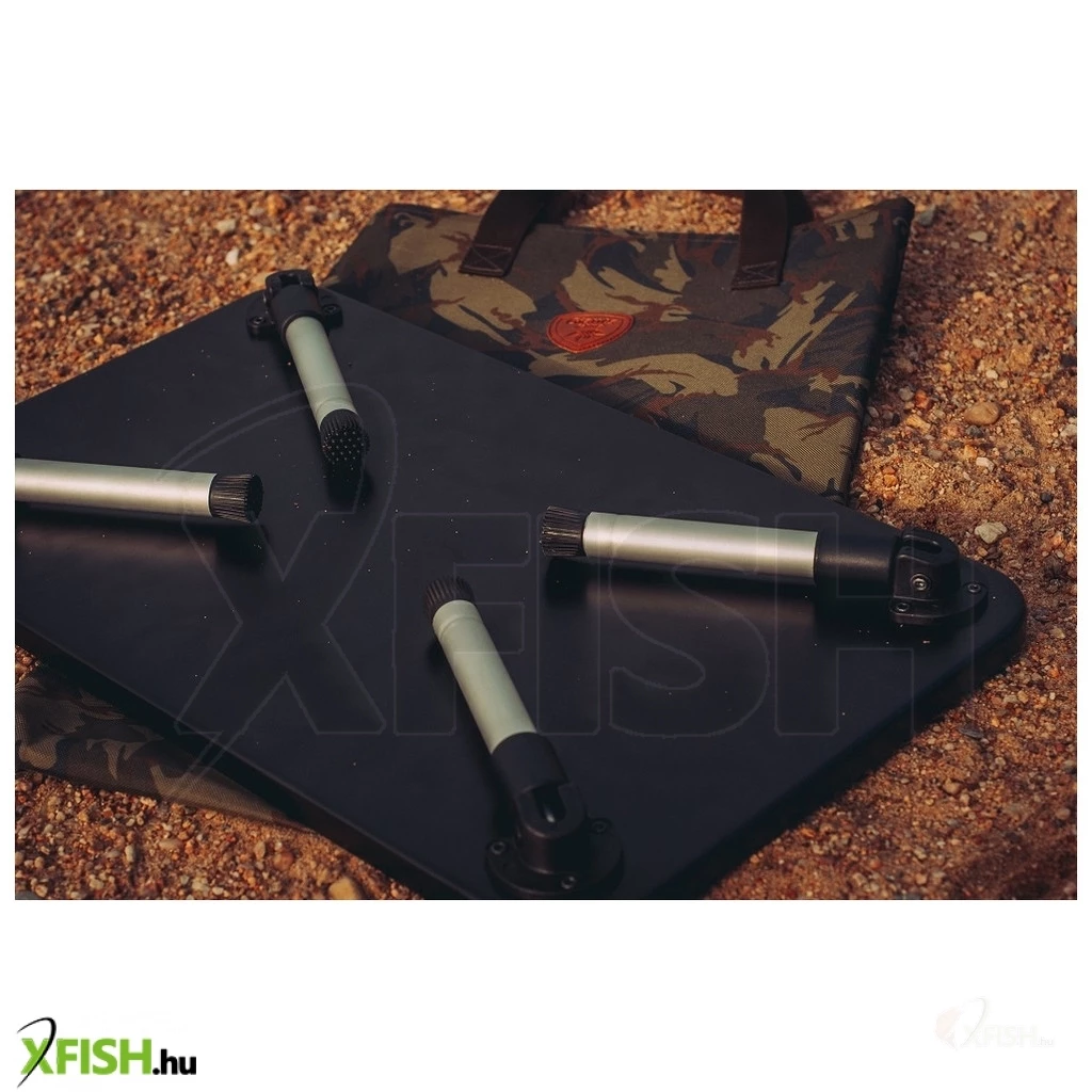 Ez a kompakt asztal mind a négy lábán állítható magasságot kínál, így mindig optimálisan beállítható a tökéletes munkaállomás érdekében, függetlenül attól, hogy egyenetlen talajjal van dolgunk. A lábak rendkívüli stabilitást biztosítanak, még nagy terhelés mellett is, miközben az összecsukható funkció lehetővé teszi a könnyű szállítást és tárolást, ami különösen hasznos lehet többnapos horgásztúrák során.