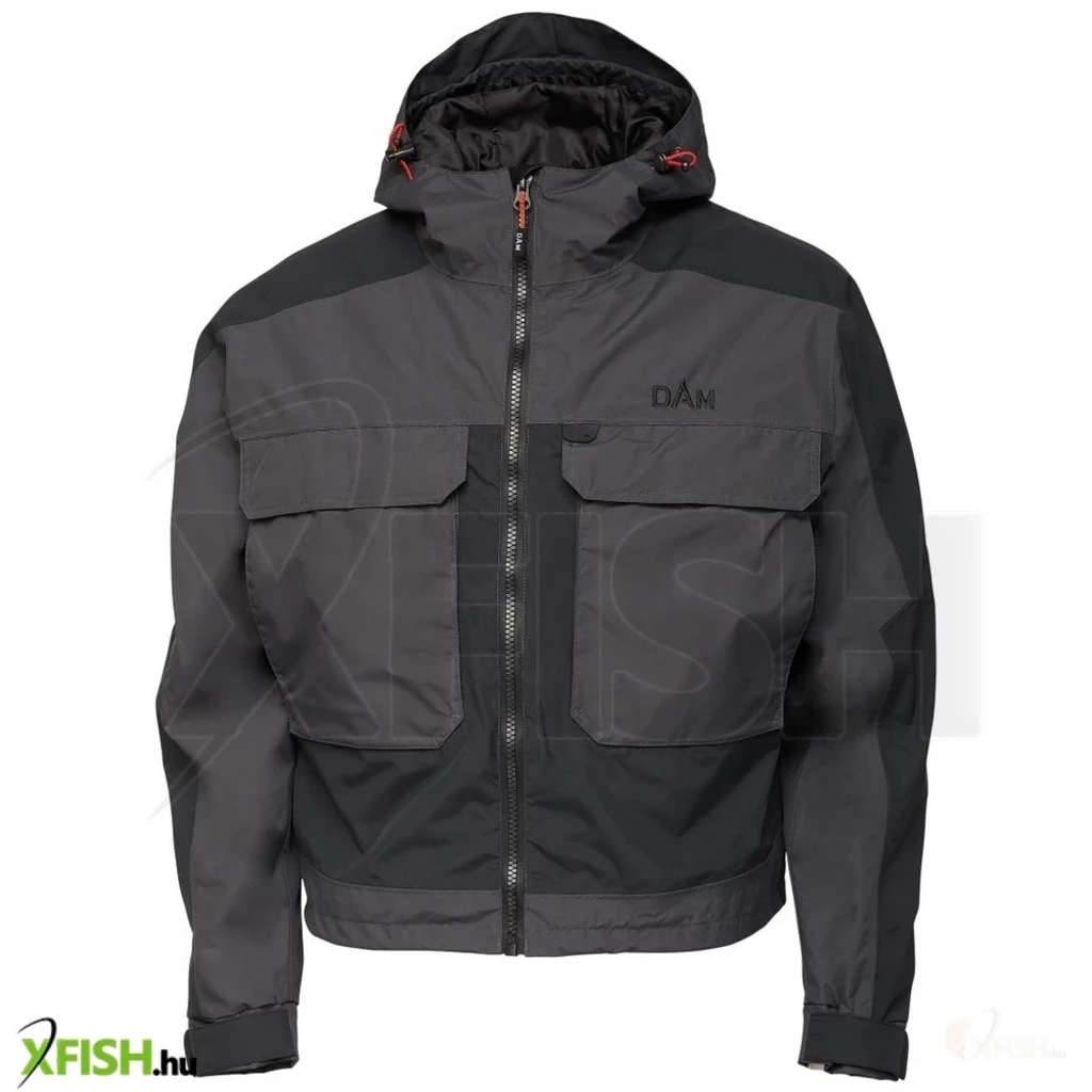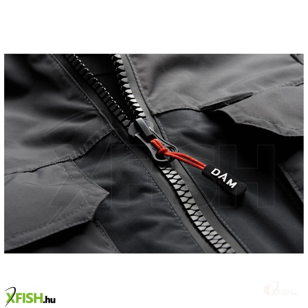 D.A.M DRYZONE KABÁT BLACK/GREY. A DAM Dryzon kabát kifejezetten azoknak készült, akik fel akarnak készülni a kiszámíthatatlan és váratlan időjárásra akár folyón, akár tavon horgásznak. Ez a két rétegből álló kabát vízhatlan és egyben jól szellőzik a 2 különálló rétegnek köszönhetően, ami nagyon kényelmessé teszi viselését. A külső PU bevonattal van bevonva ami 8000mm/5000mvp vízlepergető tulajdonságú. Hálós, lélegző belső rész, állítható kapucni, nagy hátsó és belső zseb, nagyméretű vízhatlan első cipzár és 2db nagy zseb a mellkas részen, melyek esővédő záró résszel lettek ellátva. Állítható mandzsetta rész és összehúzó a mellkason. TAP -szerszám rögzítési pont a fogóhoz és szerszámokhoz, D-gyűrű.