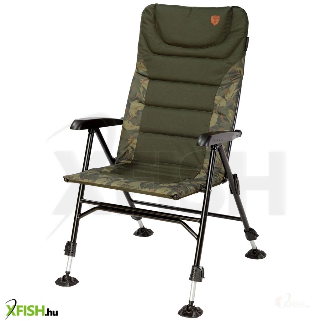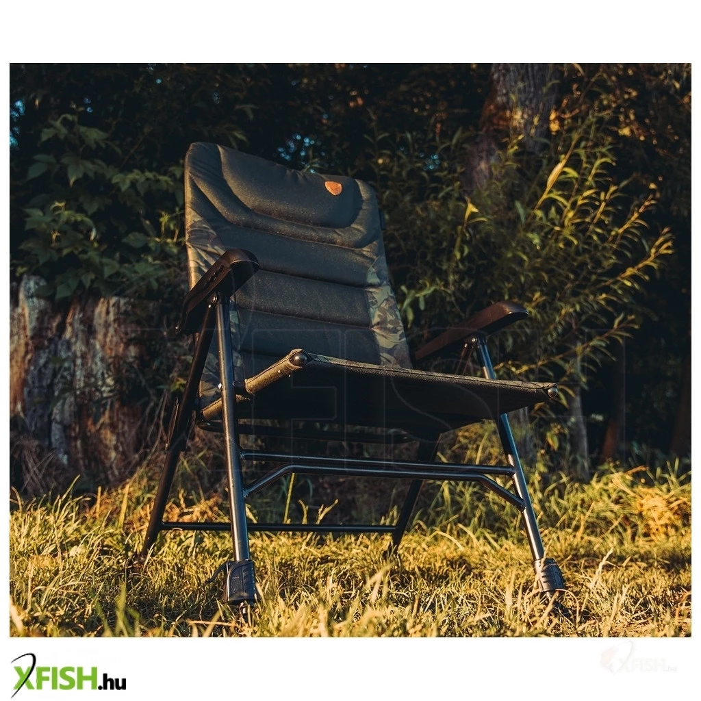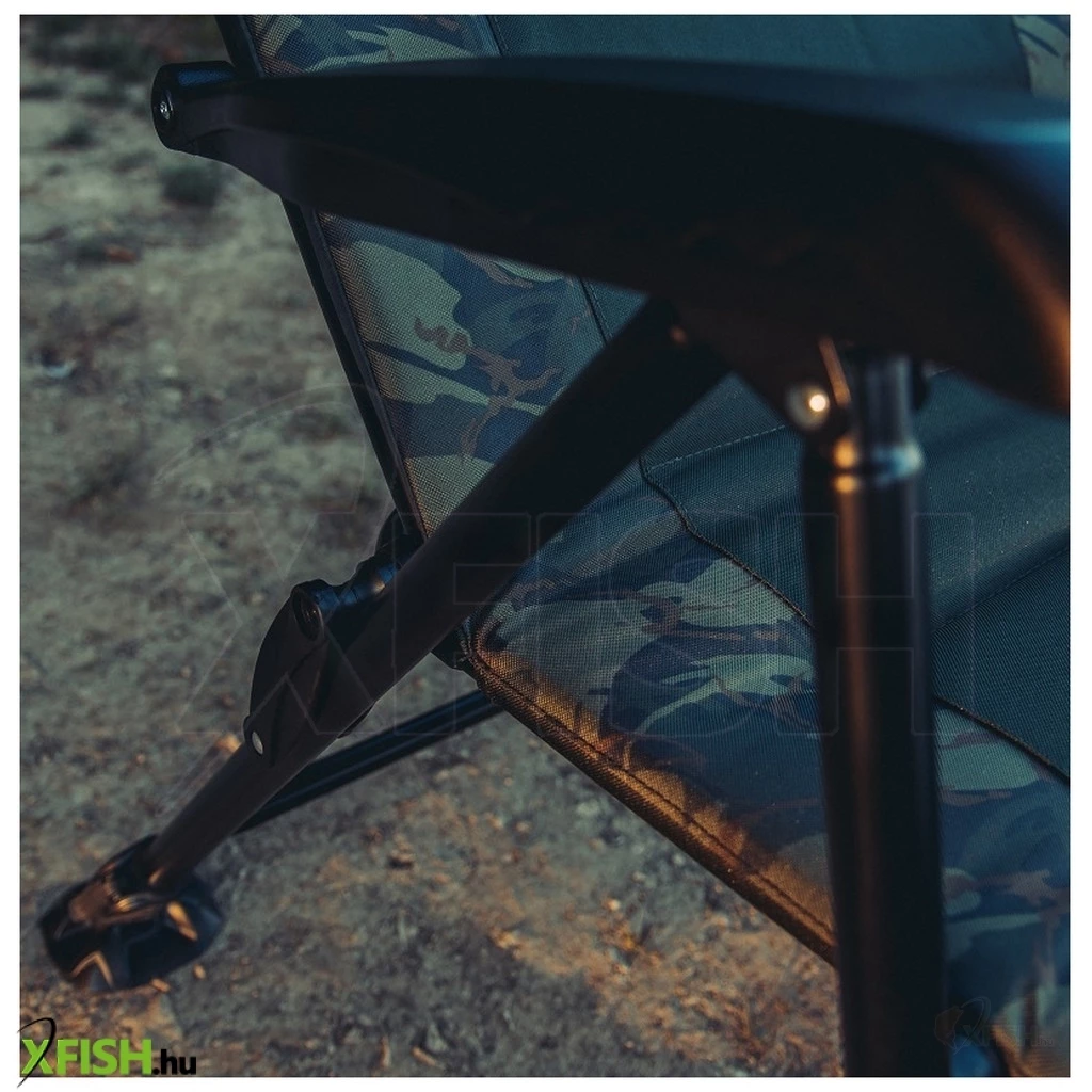 Az ülés egy új, camo kárpitozást kapott, amely nemcsak esztétikailag vonzó, de a természetes környezetbe is kiválóan illeszkedik. A 74 cm hosszú magas háttámla különösen azok számára ideális, akik magasabbak az átlagnál, hiszen megkönnyíti a hát pihentetését hosszú órák során is. Az ülés szélessége 54 cm, ami bőséges helyet biztosít az erősebb testalkatú horgászok kényelméhez is.