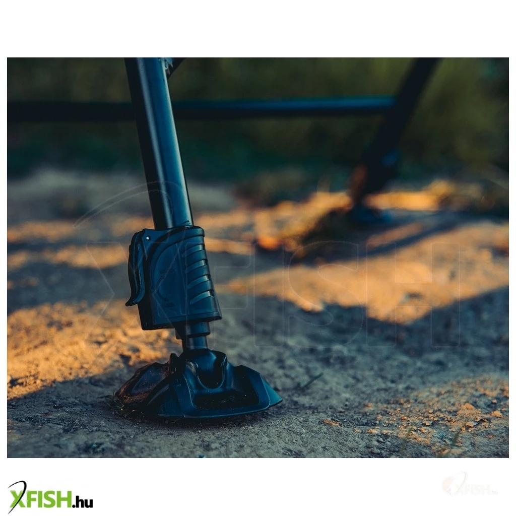 A szorítózár és az oldalkar együttes használatával könnyedén állítható az egyes lábak hosszúsága, így a fotel bármilyen terepre stabilan elhelyezhető, megőrizve a megfelelő üléspozíció és kényelem harmóniáját.