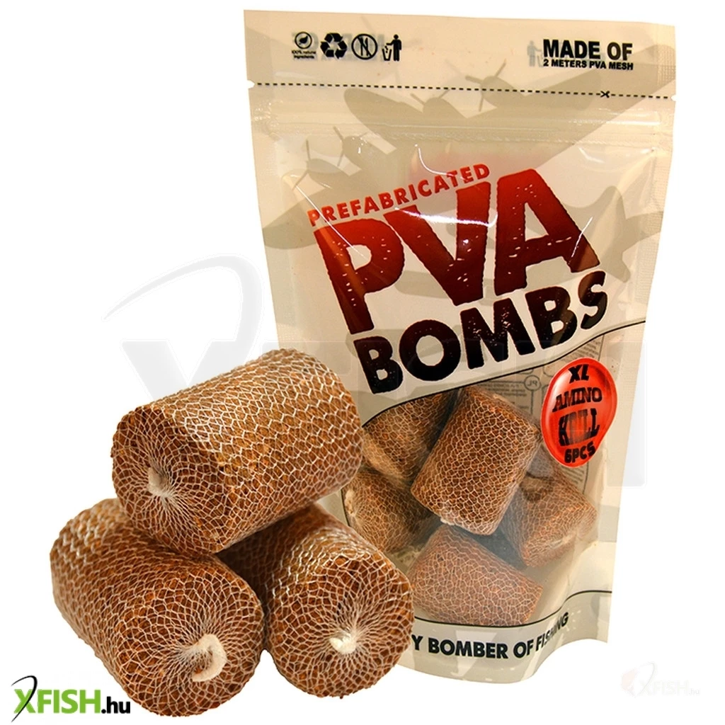 A PVA BOMBS két méter, magas minőségű PVA hálóba töltött, speciális összetevőkből álló csalogatóanyagot tartalmaz. A csomagban található 20 db. PVA töltet ami a magasnyomású, precíziós betöltő eljárásnak köszönhetően a mederfenékre érés után szinte azonnal szétrobban a csali körül. Segítségével precíz csalogatóhatást érhetünk el, anélkül, hogy a vízparton kellene töltögetnünk az egyébként sérülékeny PVA hálót.Minden egyes zsákocska mögött hosszú évek versenytapasztalata, több ezer vízparton töltött óra van. A PVA BOMBS a speciális helyzetekhez is igazodva 5 különféle ízben kerül forgalomba, így minden szituációban eredményesen használható, melyek íz és beltartalmuktól függetlenül PVA barát dippel vagy locsolóval még vonzóbbá tehetők. Minden termék a haltakarmányozásban is használt magas minőségű kiváló beltartalommal bíró haltáp-keveréket és hozzáadott aminosavakat, omega-3 zsírsavakban gazdag halolajat és a tápanyag hasznosítást segítő esszenciális olajokat tartalmaz.
