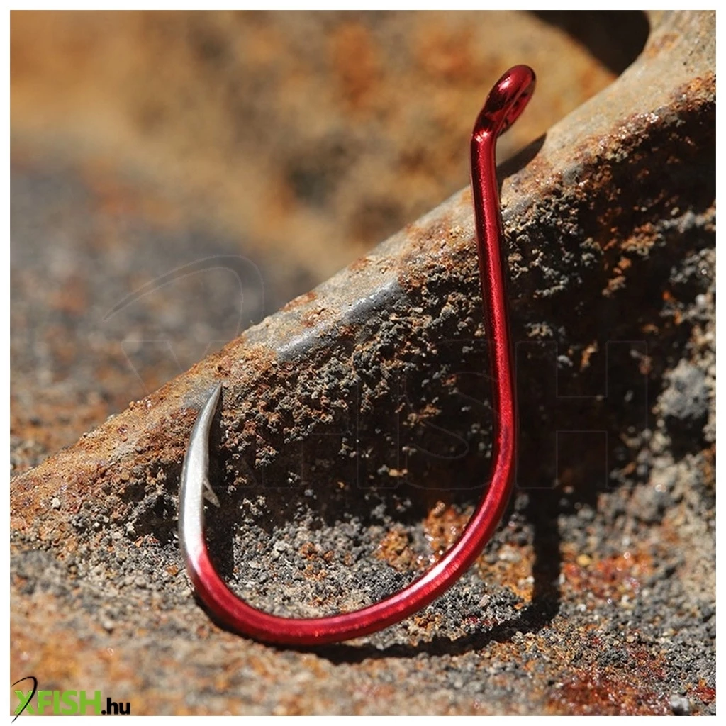 A vörös festés nem csak a horog rejtőzködését növeli, illeszkedve a használt csalikhoz, hanem korrózióállóságot is garantál.