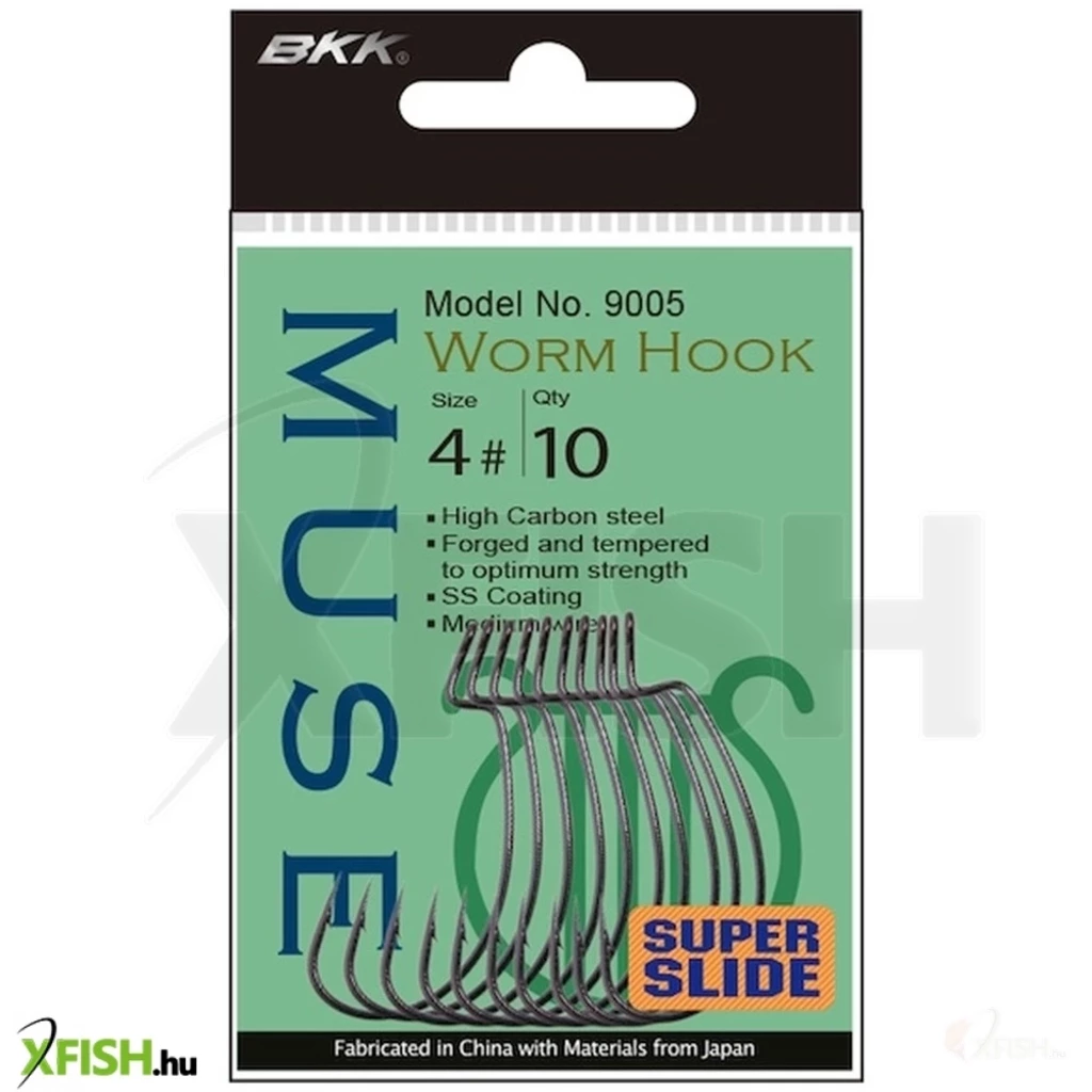 A BKK Muse egy finom Worm-Offset horog, amivel a legtöbb lágy plasztikcsali tökéletesen feltűzhető és sikeresen alkalmazható a növényzettel benőtt vagy nagyobb nyomásnak kitett területeken is.
