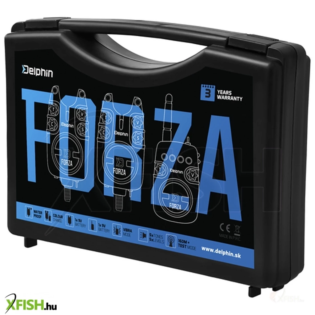 A Delphin FORZA egy olyan kapásjelző szett, amely minden körülmények között megbízható fény-, hang- vagy rezgő jelzést ad. A kapásjelző és a vevőegység teste fekete szilárd ABS műanyagból készült, amely garantálja a mechanikai sérülésekkel szembeni ellenállást. A hosszú élettartamhoz hozzájáruló szempont az abszolút vízállóság is. Minden jelzőkészülék a billenőkapcsoló segítségével nappali vagy éjszakai üzemmódba kapcsolható. Éjszakai üzemmód esetén a helyzetjelző LED kigyullad, ennek köszönhetően mindig áttekintést kap a botok elhelyezéséről. A kapásjelzők szeléskörű beállítással szolgálnak. A jelzőhang (T kapcsoló) és érzékenység 1-9cm tartományban (S kapcsoló) igény szerint öt lehetőség közül választható. Ejtős kapás esetén más hangtónussal jelez. A hangerő öt különböző szinten is beállítható, a 0 szint néma üzemmódot jelent. A FORZA készlet jelzőeszközeinek vitathatatlan előnye az a lehetőség, hogy a jelző LED dióda 7. színéből választhatunk. Mindenki kiválasztja a kedvencét, és ha változást szeretne, egyszerűen válasszon egy másik színt a "C (szín)" forgókapcsolóval, és nem kell új jelzőt vásárolnia. Alul van egy bemenet 2,5 mm-es jack csatlakozóhoz a világító kapásjelző csatlakoztatásához. Ezenkívül minden jelző rendelkezik menettel a sang gear rögzítésére, amelyek szintén a csomag részét képezik. A kapásjelzőkhöz ezenkívül kap szállító takarókat a vevőhöz pedig asztaltartót!