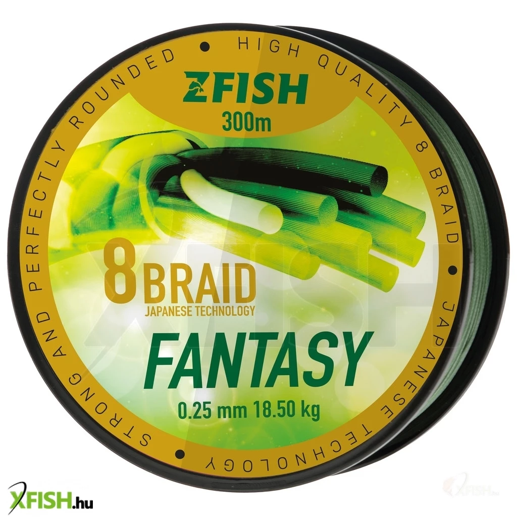 A Zfish Fantasy 8-Braid egy kiváló minőségű, erős és tökéletesen kerek fonott zsinór, amelyet japán technológia készített 8 kiváló minőségű PE szál felhasználásával. A 8 szál használatának köszönhetően kerek keresztmetszetet érünk el, és a zsinór ezért nem tesz ekkora ellenállást a bot gyűrűiben, könnyebben csúszik és így a dobások pontosabbak és hosszabbak vele. A legújabb fonási technológiák nagy csomószilárdságot és fokozott kopásállóságot garantálnak. A FANTASY zsinór nem szívja magába a vizet, így nem változtatja meg a dobási vagy merülési tulajdonságokat.