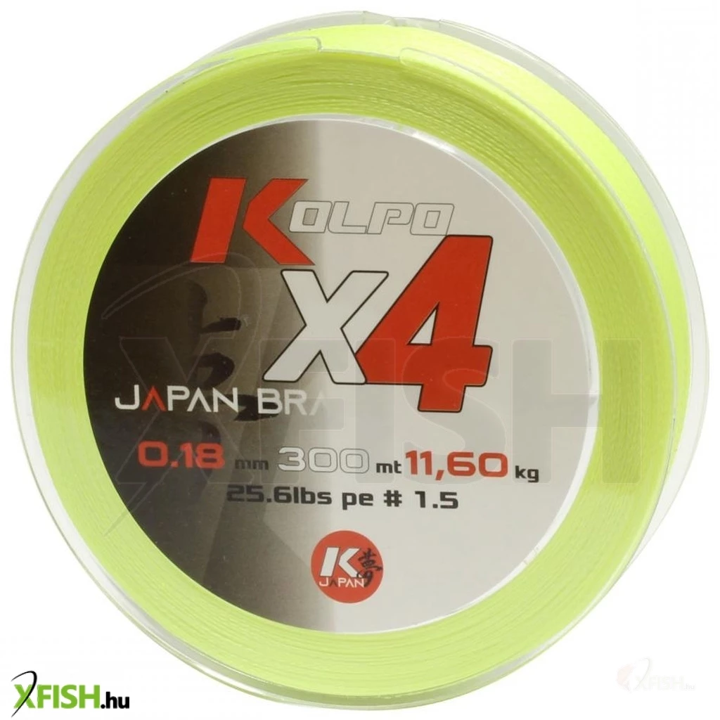 Kolpo Kx4 Braid Yellow Fonott zsinór Sárga 300 M 0,18 mm 11,6 Kg