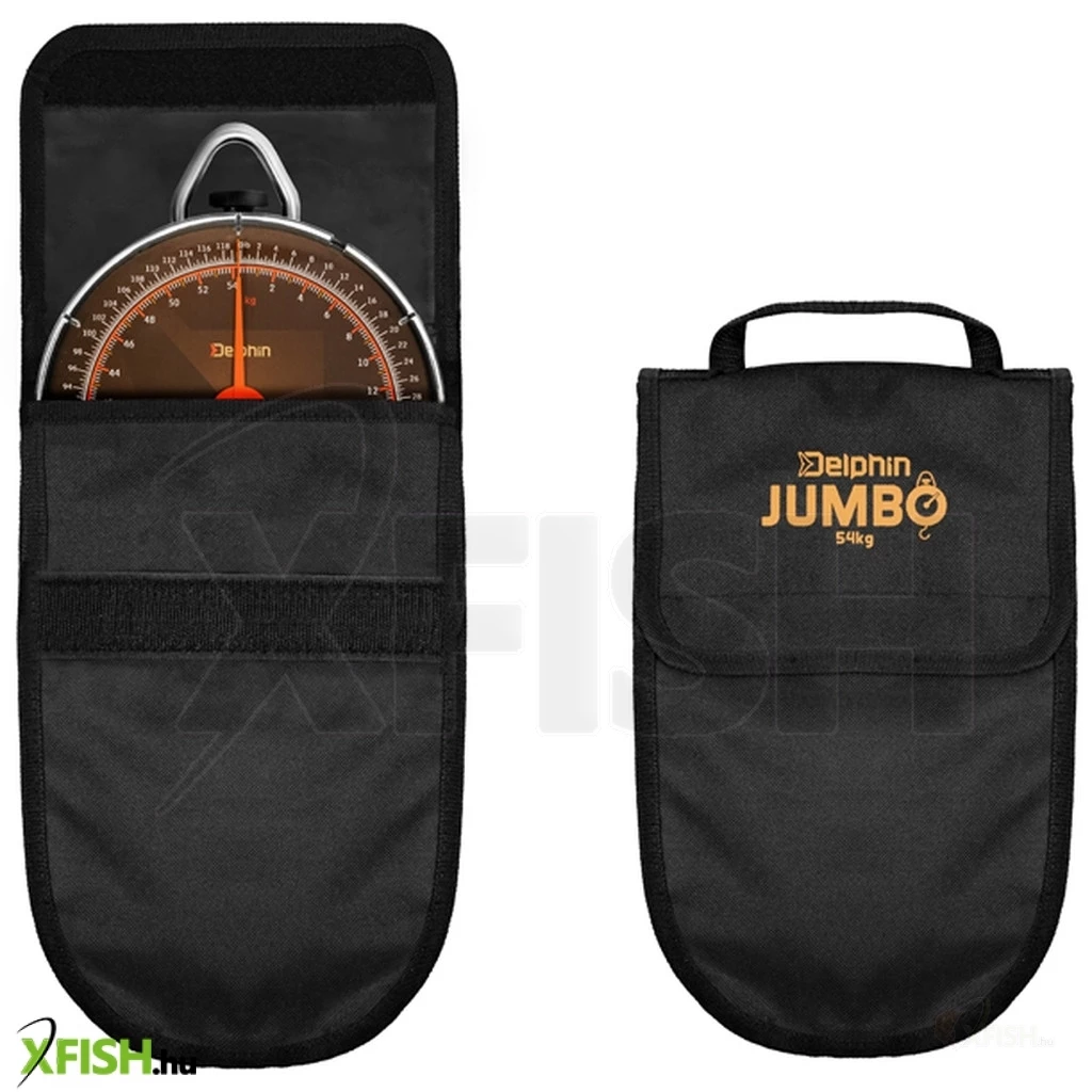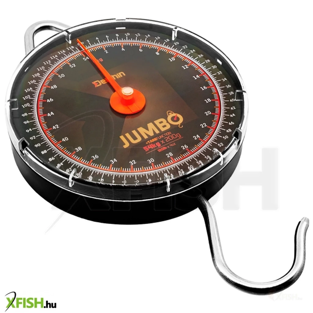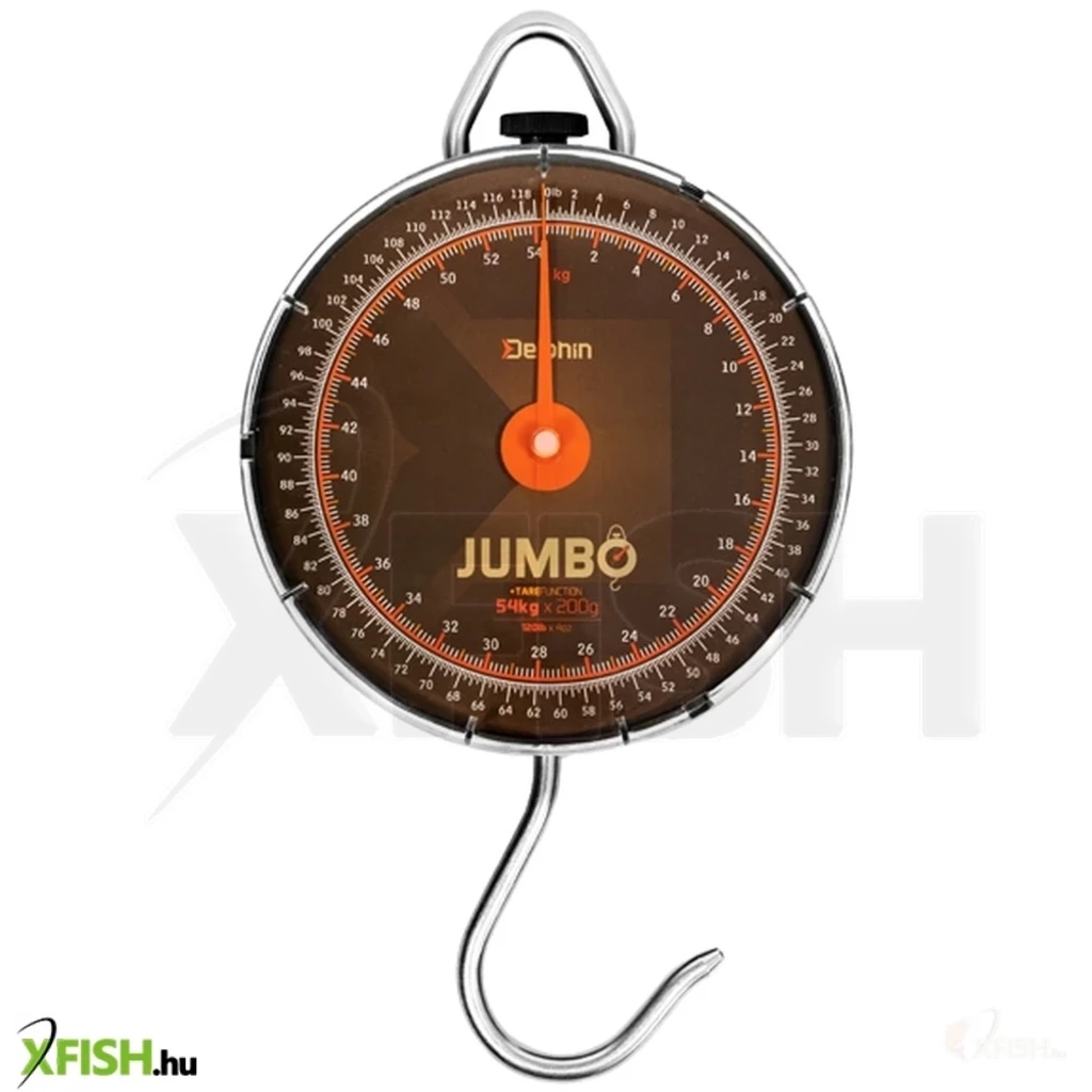 Robusztus mechanikus mérleg a nagyobb halak mérlegelésére. A JUMBO mérleg erős szerkezete lehetővé teszi 54kg-ig a mérést, minimális eltéréssel. A mért súly a nagy előlapon mutatkozik, két mértékegységben, kilogrammban és fontban. Mérésnél az emelést az erős fém tartó segíti. Ezeknek a tulajdonságainak köszönhetően a Delphin JUMBO mérleg a horgászaton kívül megtalálja máshol is a kihasználását mint a vadászatnál vagy a mindennapokban.