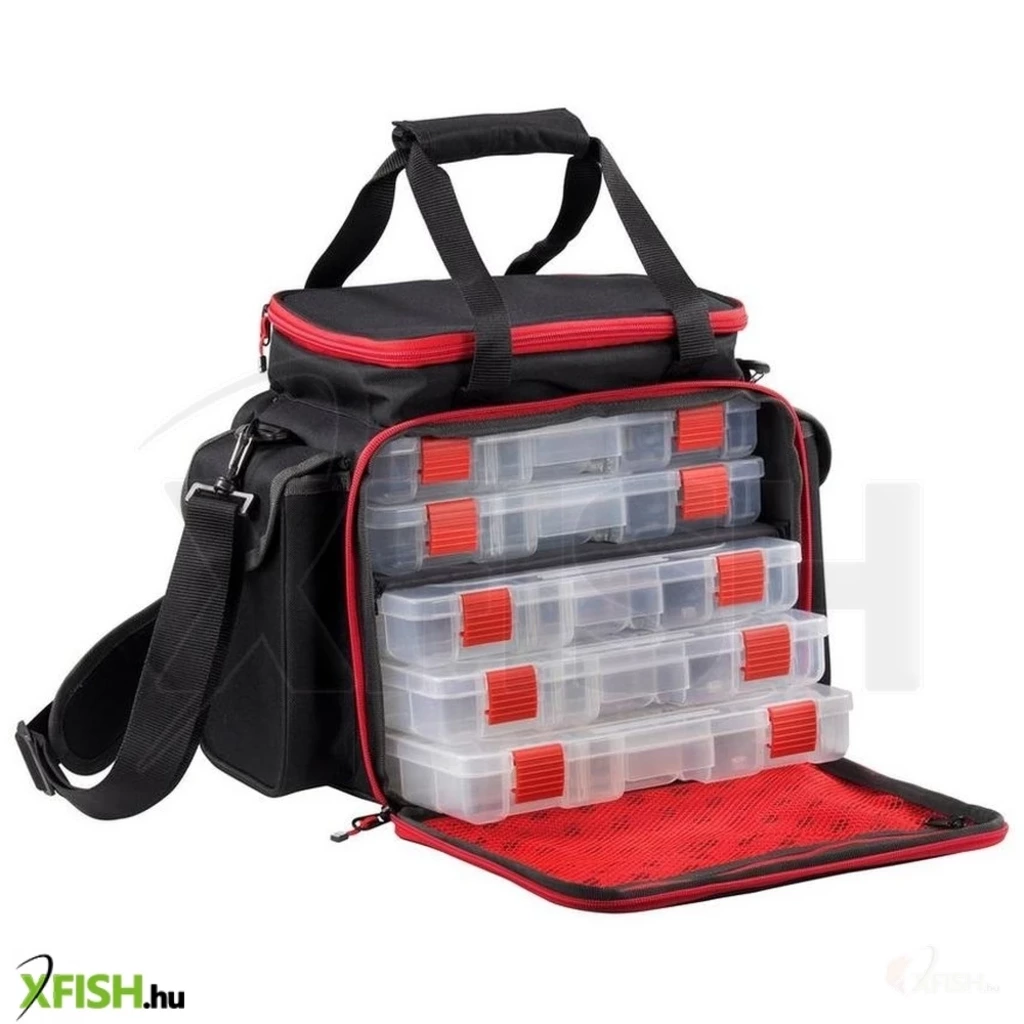 A Large Lure Bag egy nagy méretű táska, amely 5 üres (közepes) és 2 üres felszereléses dobozt (kicsi) tartalmaz. Állítható vállpánttal és 2 hordozópánttal rendelkezik. A táskán 2 oldalzseb található a kis felszerelés dobozoknak, egy felső rekesz a fogók/kiegészítők számára és egy nagy fő zseb a felszereléses dobozoknak. A fő rekeszben egy elválasztó található, ami lehetővé teszi, hogy 2 (vagy 3) felszereléses dobozt hagyjunk ki a táskából, és cseréljük ki őket más csalira/egyéb cikkekre. Minden cipzár jó minőségű, az alja pedig extra erős és vízálló. Ideális táska a csónakból horgászó horgászok számára.