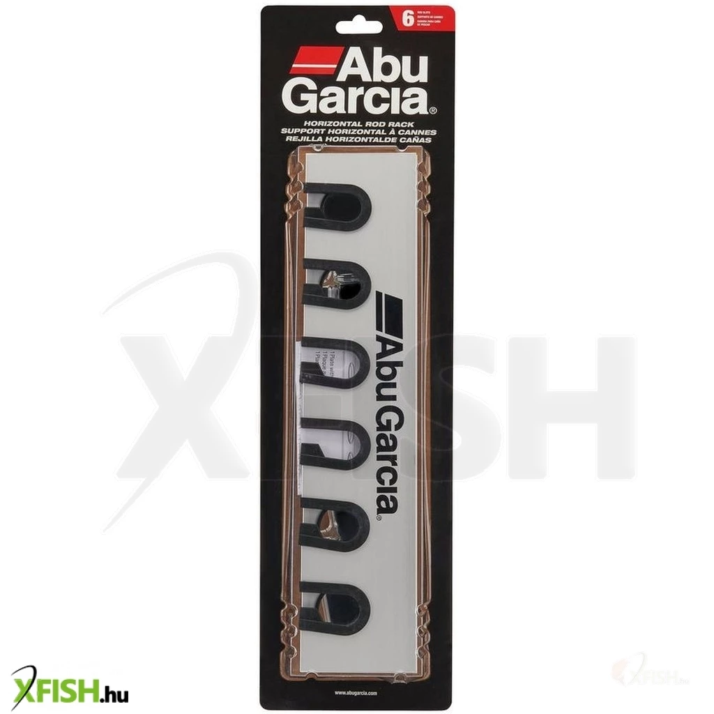 Az Abu Garcia® vízszintes 6 botos falra szerelhető helytakarékos bottartó, miközben gondosan és biztonságosan tárolja akár 6 komplett bot és orsó kombinációt. Ideális boltba, garázsba vagy csónakkikötőbe. Fához, fémhez, üvegszálhoz vagy műanyaghoz rögzítéshez használja a mellékelt csavarokat. Használjon megfelelő fali dübelt, amikor kőzetre vagy falra szereli fel.
