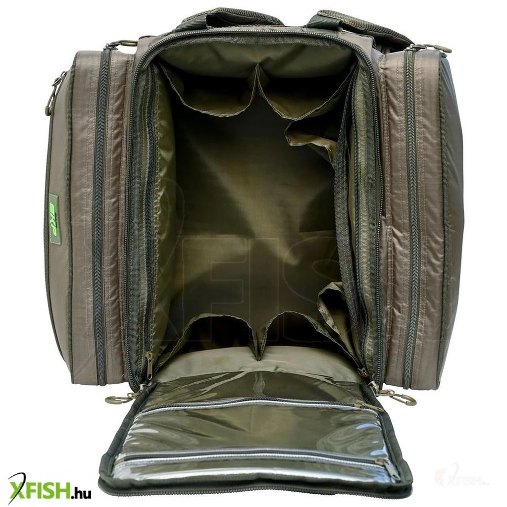 Az SKP Ruckbag tökéletes sokoldalú táska egy egész napos horgászathoz. A több cipzáras, átlátszó és hálós zseb lehetővé teszi, hogy minden létfontosságú tárgyakat elkülönítve és könnyen hozzáférhető helyen tartsa. Az öntött, megerősített talp masszív és kopásálló megjelenést és érzetet kölcsönöz ennek a táskának.