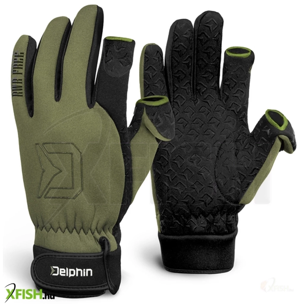 A Delphin RWR Free neoprén kesztyűk még a leghidegebb napokon is melegen tartják a kezét. A kesztyűk részletes kidolgozása, a téli horgászat komfortját egy teljesen más szintre helyezi. Nagy pozitívum még a tenyér gumírozott felülete, amely csúszásgátló, gumírozott réteggel van ellátva, innovatív Delphin logóval. A hüvelyk- és mutatóujj végén levehető végek, tépőzáras rögzítési lehetőséggel, megkönnyítik az apró cikk kezelését vagy felgyorsítják a végszerelék elkészítését. Hogy ne kerüljön a kesztyűbe hideg vagy nem kívánt víz a csuklójára, a tömítésük belevarrt gumiból készült, és tépőzáras szorító övvel is állítható. A zöld és fekete színkombináció az RWR Free kesztyűket tökéletes társsá teszi horgászathoz és egyéb szabadidős tevékenységekhez.