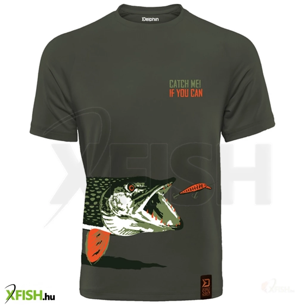 Fedezd fel a Delphin Catch Me! Csuka póló varázsát! Kényelmes viselet pergetéshez vagy hétköznapokra. Tűnj ki a parton ezzel a különleges, csukát ábrázoló sötétzöld pólóval!