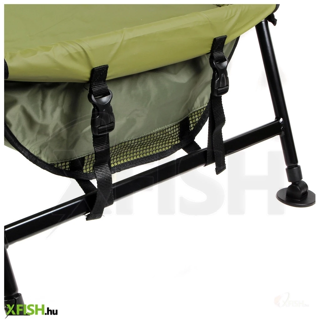 Erős, strapabíró gumírozott tarpaulin anyagból készült pontybölcső a By Döme kínálatában. Könnyen lemosható, pár perc alatt megszárad, nem veszi be a kellemetlen szagokat. Kétodalt gumírozott hálóval ellátott, ahol a felesleges víz ki tud folyni. Az oldalain feszítő pántok biztosítják, hogy a huzat ne mozogjon ide-oda a kereten. A 20 mm-es acélcsövekből készült váz extrém stabilitást biztosít neki. Rendkívül praktikus, mert a keret ketté hajtható, ezért igen kicsi szállítási méretre összecsukható. A lábak végén széles talpakkal készül, amelyek megakadályozzák a laza földbe süppedést. Méret: 100x60 cm, magassága 33 cm.