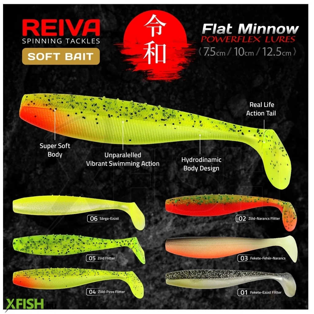 ![]() | Reiva Flat Minnow Shad Gumihal Sárga Narancs Flitter 7,5cm 5db/csomag Hosszúság: 7.5 cm