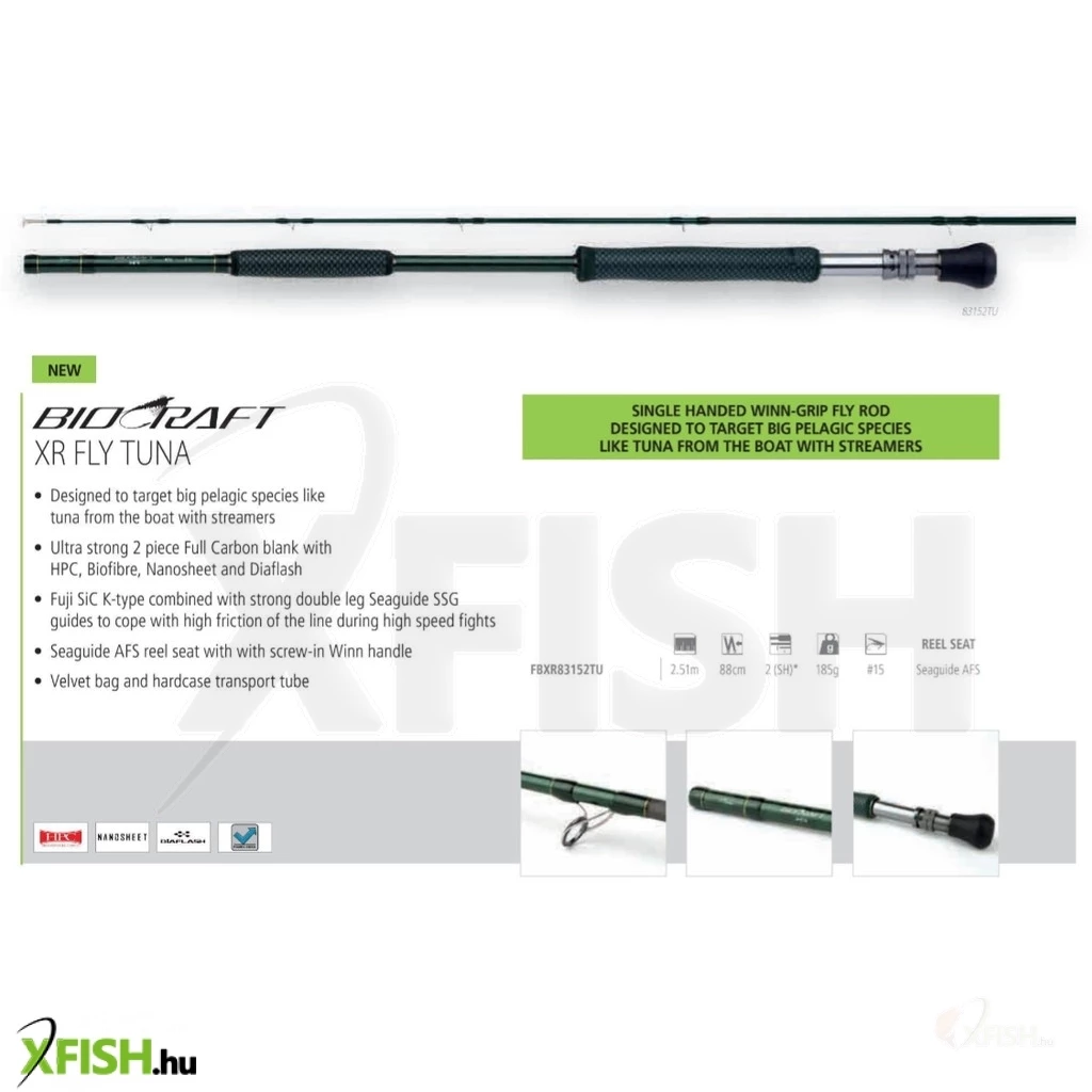A Shimano Biocraft XR Fly Tuna Tonhalas Legyező Horgászbot a legkifinomultabb és legmodernebb technológiával készült legyezőbot, amelyet a Shimano valaha is megalkotott. Ez a kiváló eszköz a dobási teljesítményt, a horgászat gyakorlatiasságát és a kiváló értéket ötvözi egy lenyűgöző kombinációban. Különleges jellemzője a széntechnológia és a horgásztudás páratlan összeolvadása, amely a legkülönfélébb horgászmódszerekhez biztosít kimagasló teljesítményt, legyen szó akár finomszerelékes technikáról vagy épp nagytestű tonhalra irányuló sósvízi horgászatról.