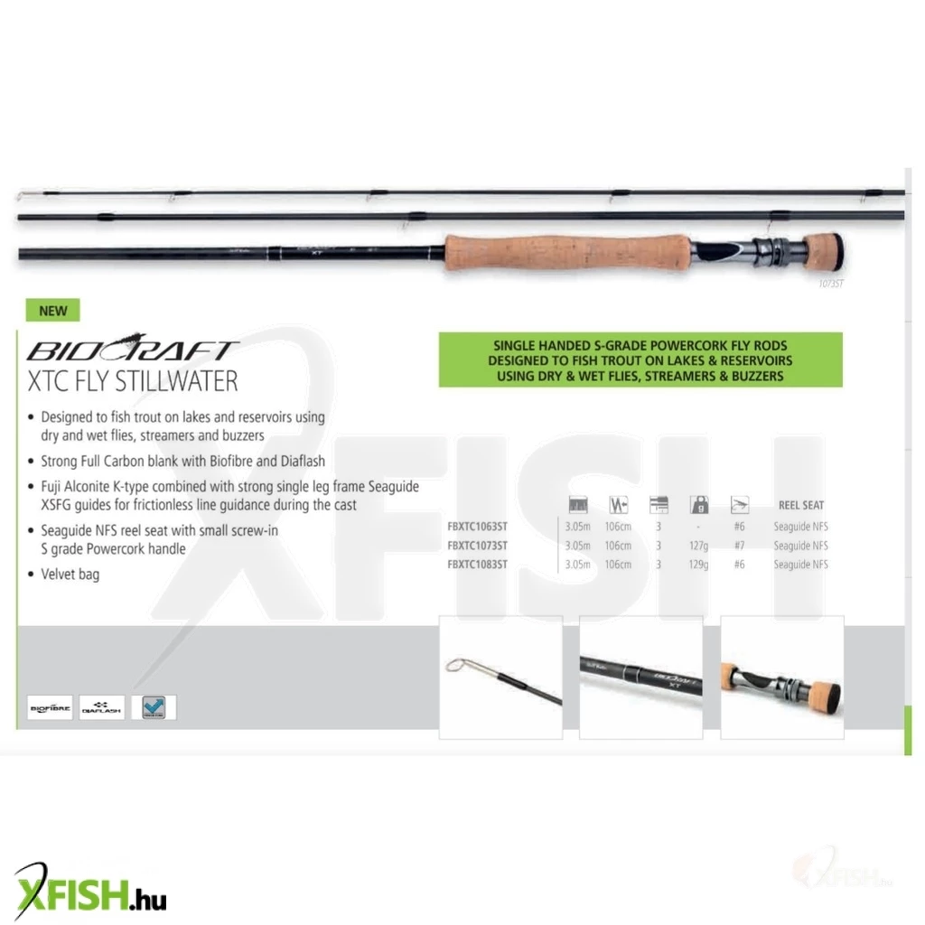A Shimano Biocraft Xtc Fly Stillwater legyező horgászbot a horgászat szerelmeseinek készült, akik kompromisszumok nélkül keresik a legjobb teljesítményt és karaktert, miközben költséghatékony megoldást keresnek. Ez a bot ideális választás mind a hagyományos patakok, mind az állóvizek pisztránglegyező horgászata során, hiszen a Biocraft Xtc minden szükséges erőt és rugalmasságot biztosít a sikeres horgászathoz. Az egyedi Full Carbon blank konstrukciónak köszönhetően, amelyet a Shimano Biofibre és Diaflash technológiák egészítenek ki, a bot könnyű, ugyanakkor rendkívül erős, így ellenáll még az intenzív igénybevételnek is, legyen szó nagyragadozókról vagy gyorsan mozgó sósvízi fajokról.