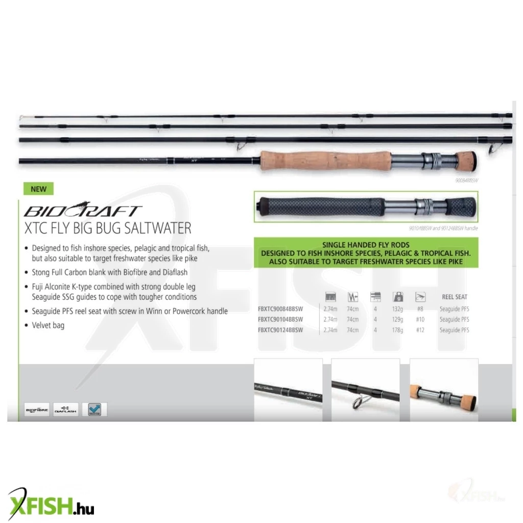 A Shimano Biocraft Xtc Fly Bg Bug Legyező Horgászbot a legyező horgászok kedvelt választása, különösen azoké, akik szeretnének költséghatékonyan kiváló dobási teljesítményt és precíz karaktert elérni. Ez a horgászbot kifejezetten a tradicionális patak és állóvízi pisztránglegyező horgászathoz lett tervezve, és minden erővel rendelkezik, amire csak szüksége lehet a szenvedélyes horgásznak. A Biocraft XT sorozat Full Carbon blankja Biofibre és Diaflash technológiával készült, amelyek fantasztikus súly és szilárdság arányt biztosítanak, továbbá ellenálló képességet nyújtanak az erősebb modellek esetében is. Ezáltal a horgászbot bátran alkalmazható nagyragadozók és ultragyors sósvízi fajok horgászatára is.