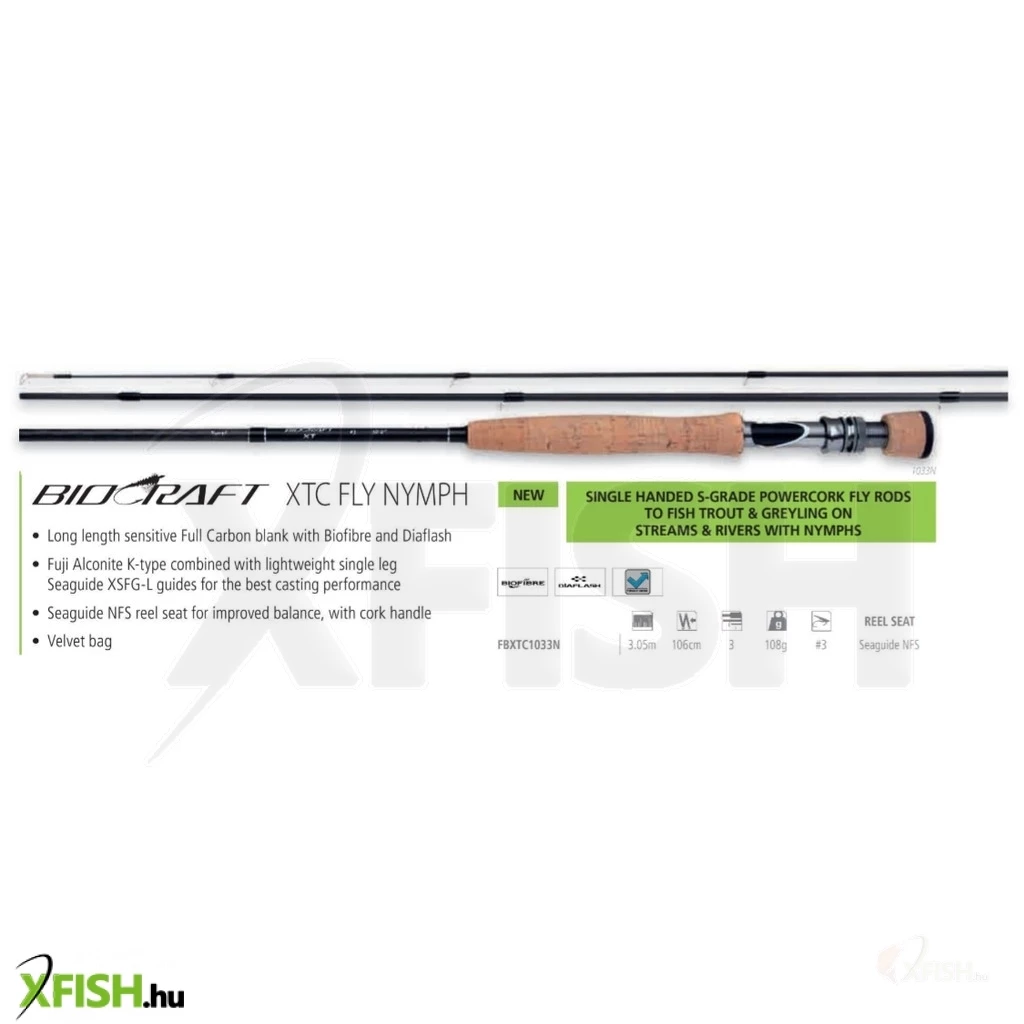 A Shimano Biocraft Xtc Fly Nymph Legyező Horgászbot 305cm #3 3Részes egy kivételes minőségű eszköz, amely a legyző horgászat szenvedélyeseinek készült, különösen azoknak, akik finomszerelékkel dolgoznak. Ez a horgászbot olyan horgászok számára ideális, akik korlátozott költségvetéssel gazdálkodnak, de mégis kimagasló dobási teljesítményt és megbízhatóságot keresnek. A Biocraft Xtc kitűnően alkalmas mind patakokban, mind állóvizekben történő pisztránglegyezéshez, a mérhetetlen erőt és rugalmasságot pedig a Full Carbon blank használata biztosítja.