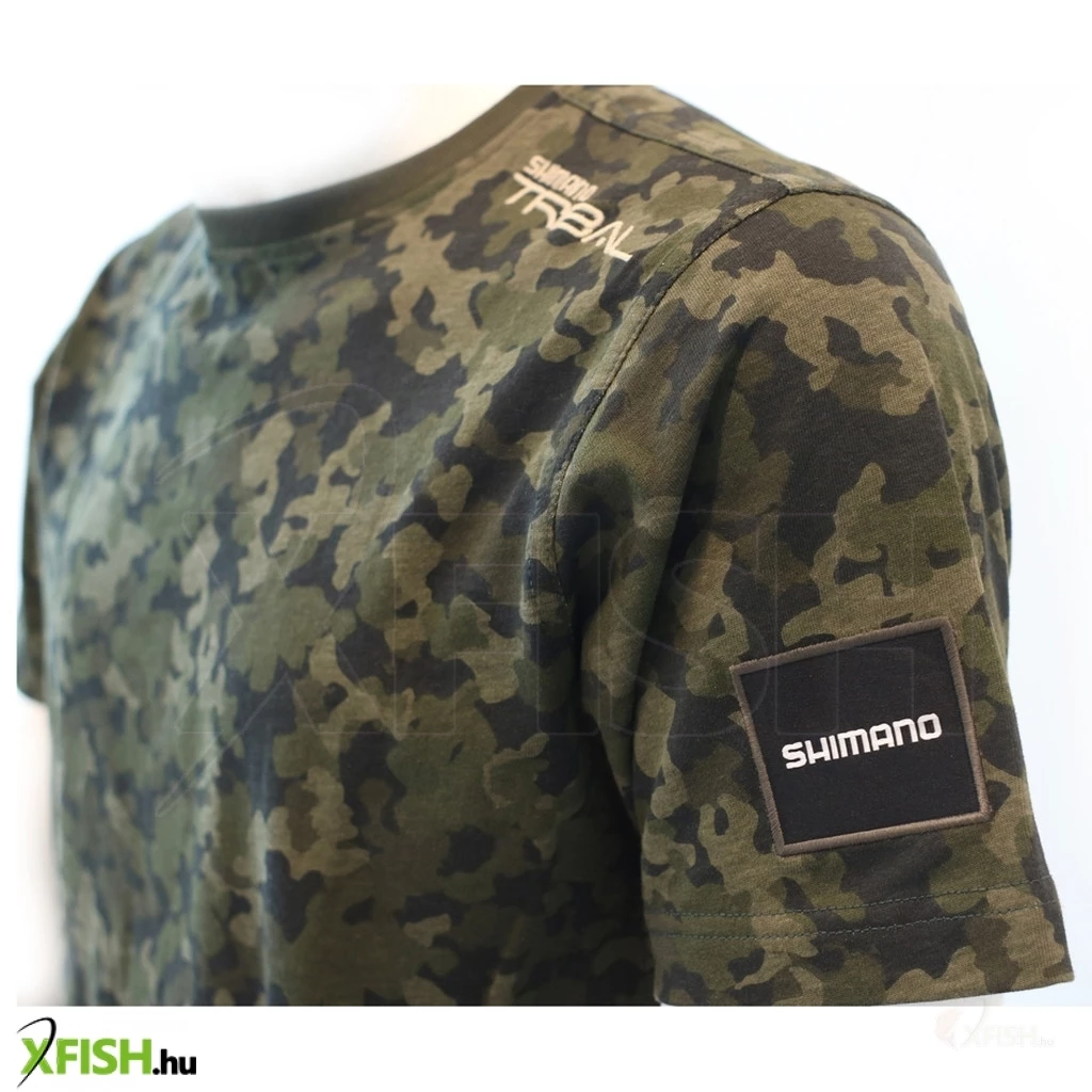 Ezzel a csinos Shimano pólóval mindig stílusosan öltözködhet a víz közelében. 100% pamutból készült, így légies és kényelmes. Ideális forró napokon. A híres XTR terepszínű nyomattal készült, az ujján és a hátán logóval.