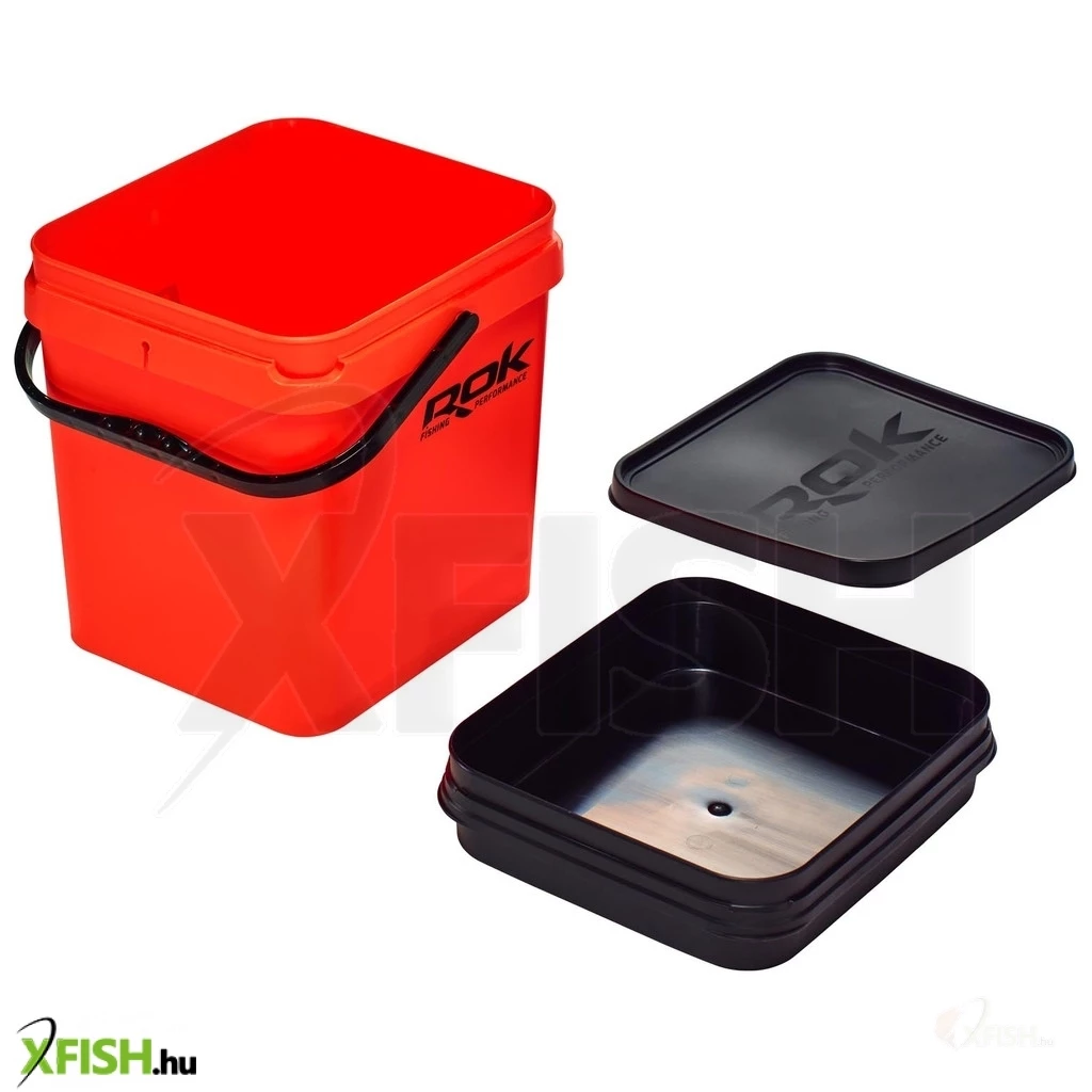 Rok Fishing Square Bucket 17 literes kocka vödör + 4 literes betét + tető Narancssárga