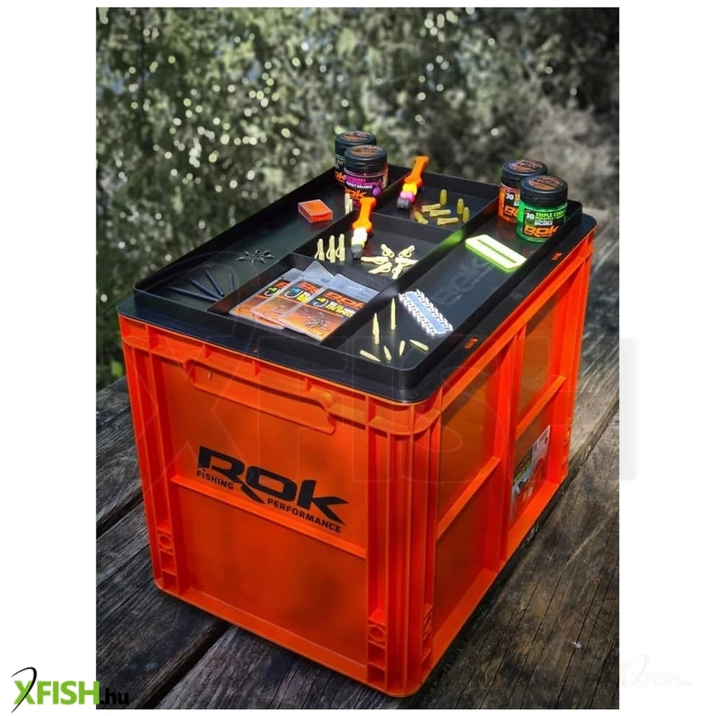 Rok Fishing Crate 433 - Tároló Rekesz + Tető 40x30x32 cm Fekete-Narancssárga