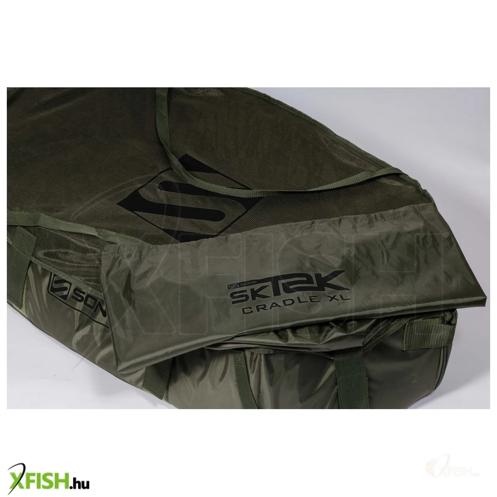 Sonik SK-Tek Unhooking Cradle XL pontybölcső. Az SK-TEK XL pontybölcső egy kellően masszív választás, a halak maximális biztonsága érdekében!A merev falak és a jól párnázott, kivehető talpak halbarát és nagy teherbírású PVC anyaggal vannak bélelve.Az okos összecsukható kialakítás azt jelenti, hogy a bölcső kompakt hordozható és gyorsan felállítható.A hálós alap gyorsan kiszárad, a felső szárny pedig tépőzárral rögzíthető, hogy a fogása nyugodtan és biztonságosan legyen a fényképezésig.