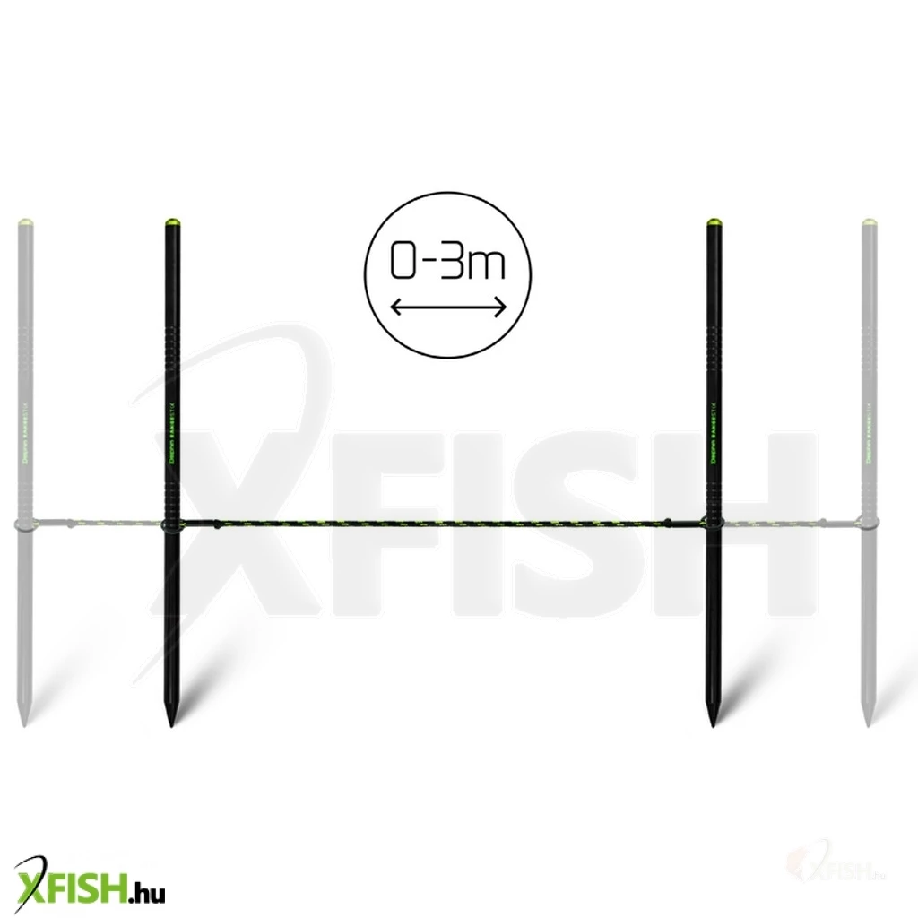 A RangeSTIX két bevágásokkal ellátott alumínium pálcából áll. Ezek a bevágások a damil vagy a fonott zsinór bennük való elhelyezésére szolgálnak, így nem áll fenn annak a veszélye, hogy a távolságmérés során a zsinór véletlenül lecsúszik a pálcákról. Természetesen van egy 3 méter hosszú mérőkötél, amely mindkét végén fűzőlyukakkal van felszerelve a rudak rögzítéséhez. A RangeSTIX egy praktikus textil tokban kapható, így mindig minden el helyen megtalál.