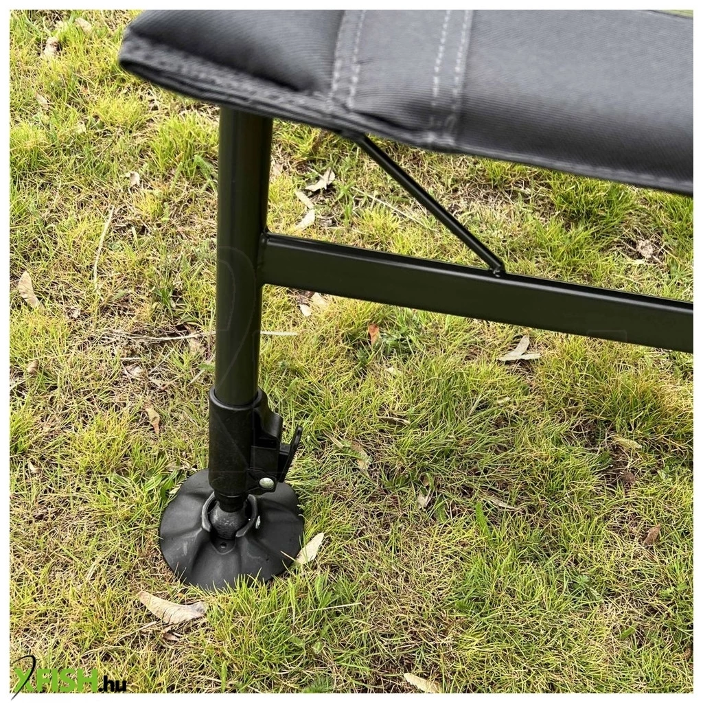 A teleszkópos lábak egyszerűen állíthatóak, ami lehetőséget ad arra, hogy a szék magassága könnyedén igazítható legyen a talajviszonyokhoz vagy a személyes igényekhez. Ez a funkció különösen praktikus, hiszen megkönnyíti a leülést és a felállást, akár instabil környezetben is. Emellett a szék 150 kg-os teherbírása biztonságos használatot garantál minden horgász számára.